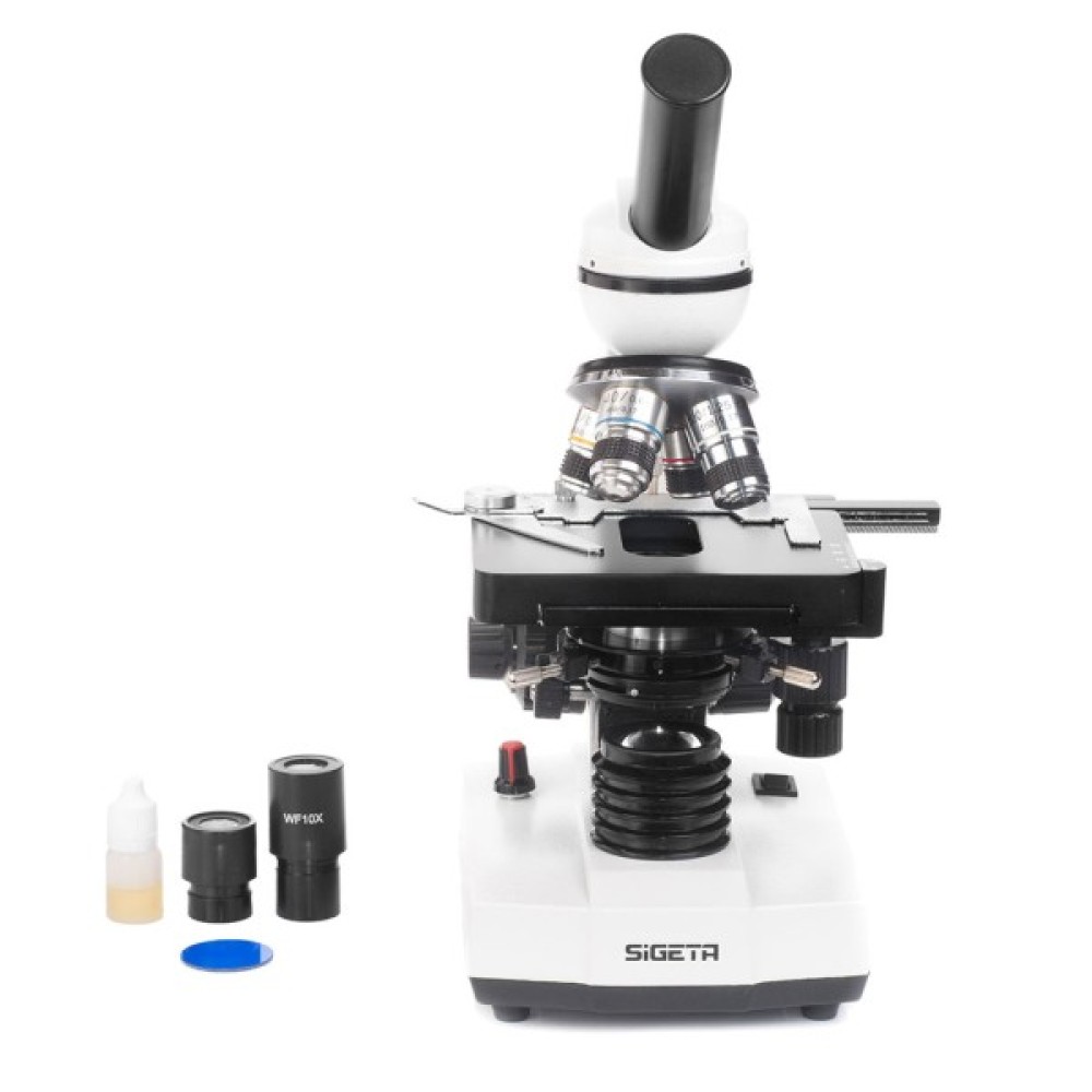 Біологічний мікроскоп Sigeta MB-130 40x-1600x LED Mono призначений для типових лабораторних досліджень і демонстрації дослідних зразків у навчальних цілях. Використовується в різних медичних, санітарних і освітніх установах. Діапазон збільшення мікроскопа — 40-1600 крат: цього досить для більшості цитологічних і гістологічних досліджень.