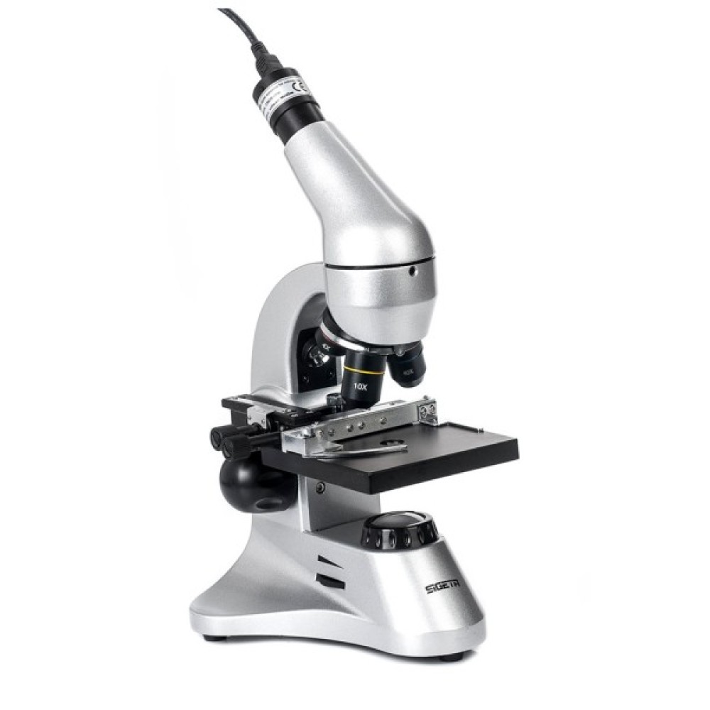 Sigeta Prize Novum 20x-1280x з камерою 2 Мп у кейсі — шкільний біологічний мікроскоп із цифровою камерою для записування фото та відео. Камера під'єднується до комп'ютера через USB-порт і не вимагає драйверів під час встановлення.