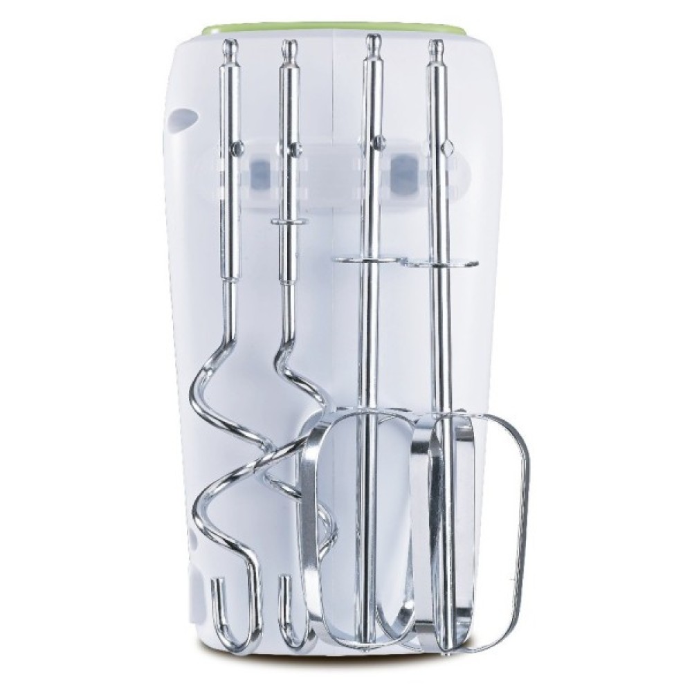 Ручний міксер Edler EDHM-3040 - це поєднання зручності, простоти та функціональності. Потужність пристрою становить 250 Вт, яка забезпечує швидку та якісну роботу приладу. Міксер має 5 швидкісних режимів, завдяки чому Ви зможете збивати продукти різної щільності. Оснащений двома вінчиками для збивання та додатковими насадками для замішування тіста. Для зручного зберігання передбачений тримач насадок. Завдяки ручному використанню міксера Ви зможете застосувати його для збивання інгредієнтів в будь-якій посудині. Турборежим дає змогу пришвидшити роботу. Елегантний та стильний дизайн забезпечує поєднання двох кольорів: білого та зеленого.