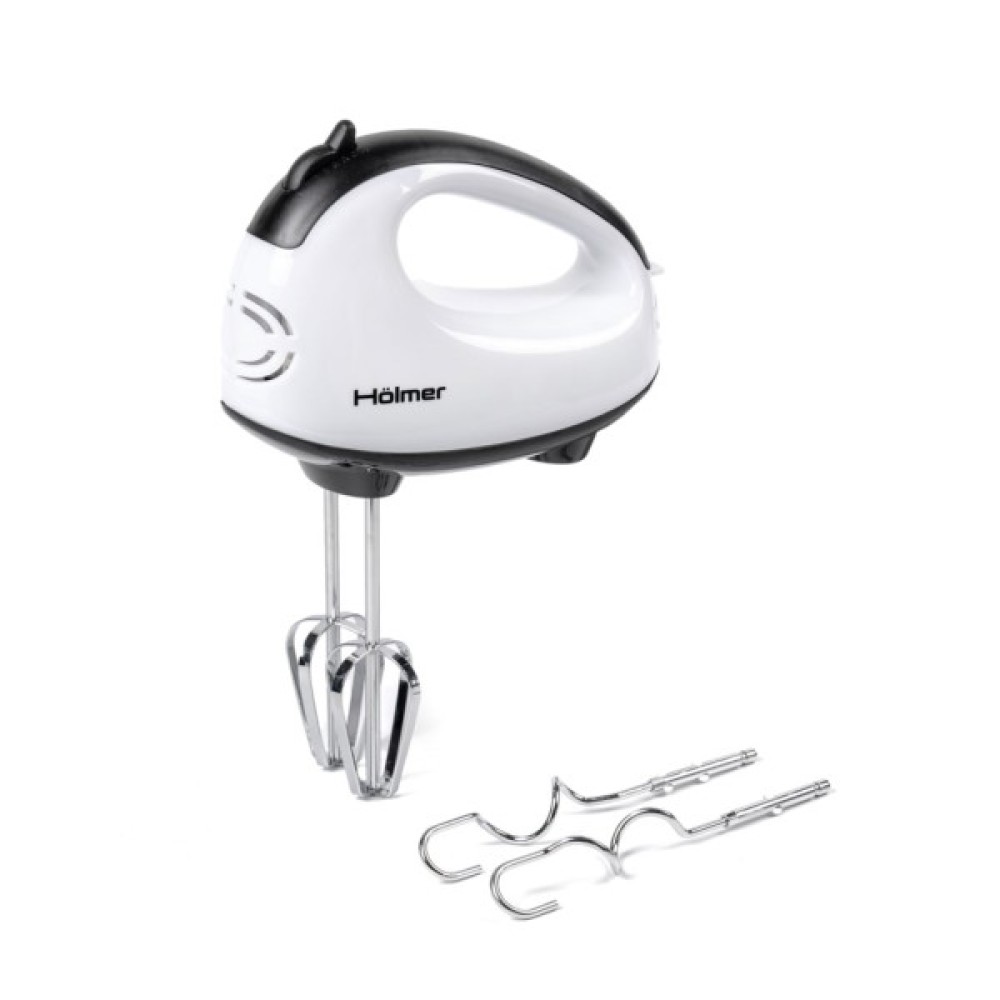 Сучасна модель Hölmer HHM-14 обтічної форми без гострих кутів представлена в класичному білому кольорі. Корпус виготовлений із якісного зносостійкого пластику, із хромованої сталі – потужні віночки для збивання та гаки для тіста.