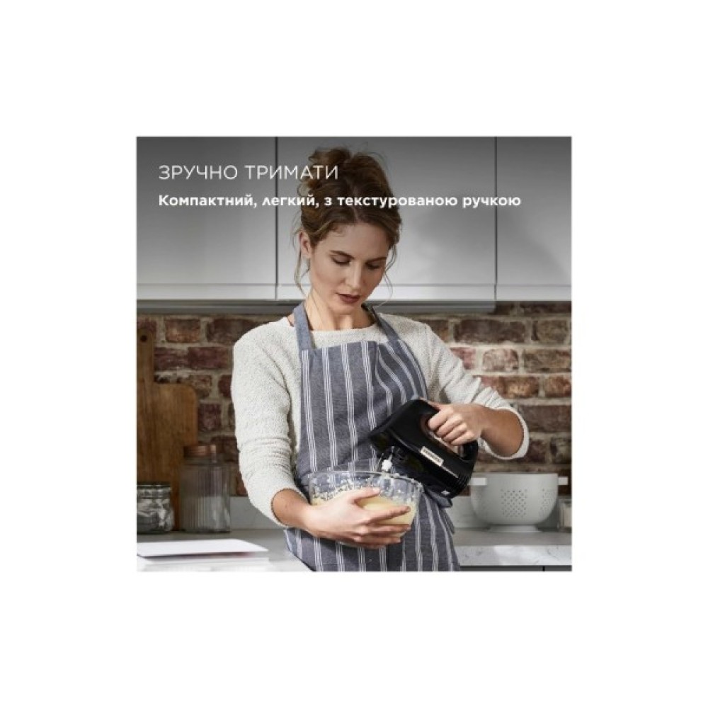 Управління і швидкістьНа вибір господині пропонується 5 швидкостей з якими ви підберете оптимальний режим збивання або замішування до кожного рецепта. Управляти швидкостями дуже легко через перемикач на ручці, який знаходиться якраз під великим пальцем. Сміливо міняйте інтенсивність в процесі роботи, підвищуючи або знижуючи швидкість, коли необхідно, а також використовуйте імпульсний режим для доведення маси для ідеальної гладкості.