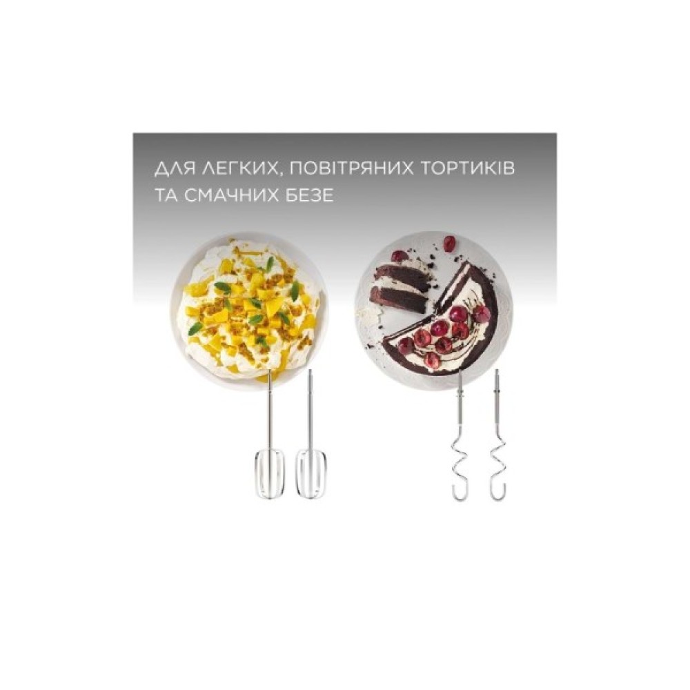 Ідеальний кремПриготування щільного масляного, ніжного вершкового, легкого білкового та іншого типу кремів – основне завдання міксера. Пара насадок-вінчиків відмінно справляється з цим завданням, збільшуючи масу в кілька разів, виключаючи утворення грудочок і максимально насичуючи її киснем. Особлива згладжена форма вінчиків дозволяє захоплювати суміш по краях і на стінках ємності, якої б форми вона не була, а також мінімізує розбризкування в процесі роботи.