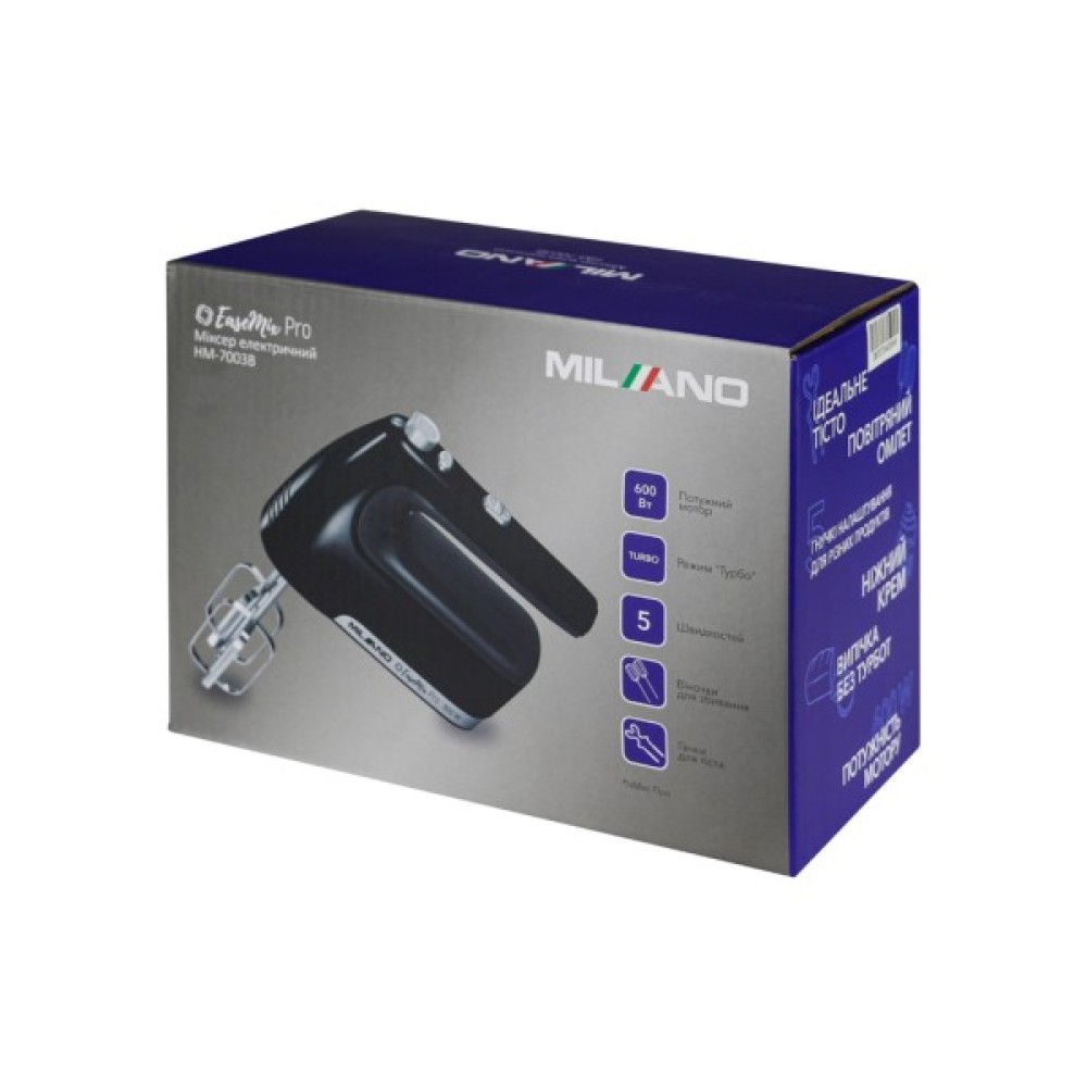 Milano HM-7003B EaseMix Pro — це вибір тих, хто шукає надійний і стильний міксер для щоденних кулінарних експериментів. Він зробить процес приготування не лише простим, а й приємним.