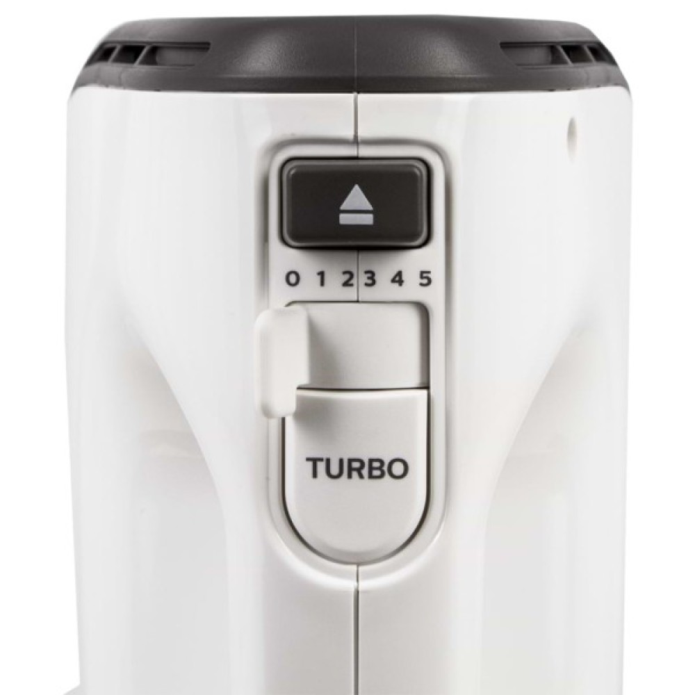 Швидко замісити заварне тісто, позбавитися від небажаних грудок або збити яєчні білки за лічені секунди господиня зможе за допомогою кнопки Turbo. Вона дозволить значно збільшити швидкість обертання насадок і швидко досягти бажаного результату збивання.