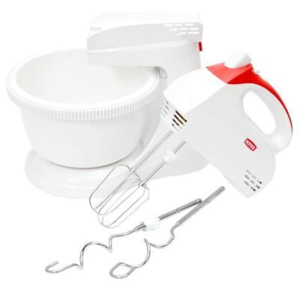 Міксер Rotex RHM 250-K- зручний в використанні міксер швидко і легко допоможе приготувати улюблені смачні страви: пироги, кекси, вершки, муси, йогурти і т.д., процес приготування, яких передбачає за собою збивання. Міксер Rotex RHM250-K компактний і дуже простий у використанні. Ця модель має масу переваг, які допоможуть у приготуванні різноманітних страв: висока потужність, вибір швидкісних режимів роботи, насадки для замішування тіста і збивання продуктів.