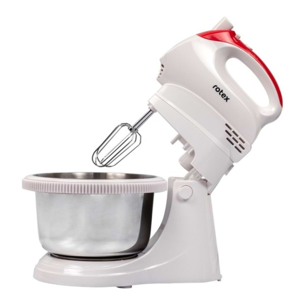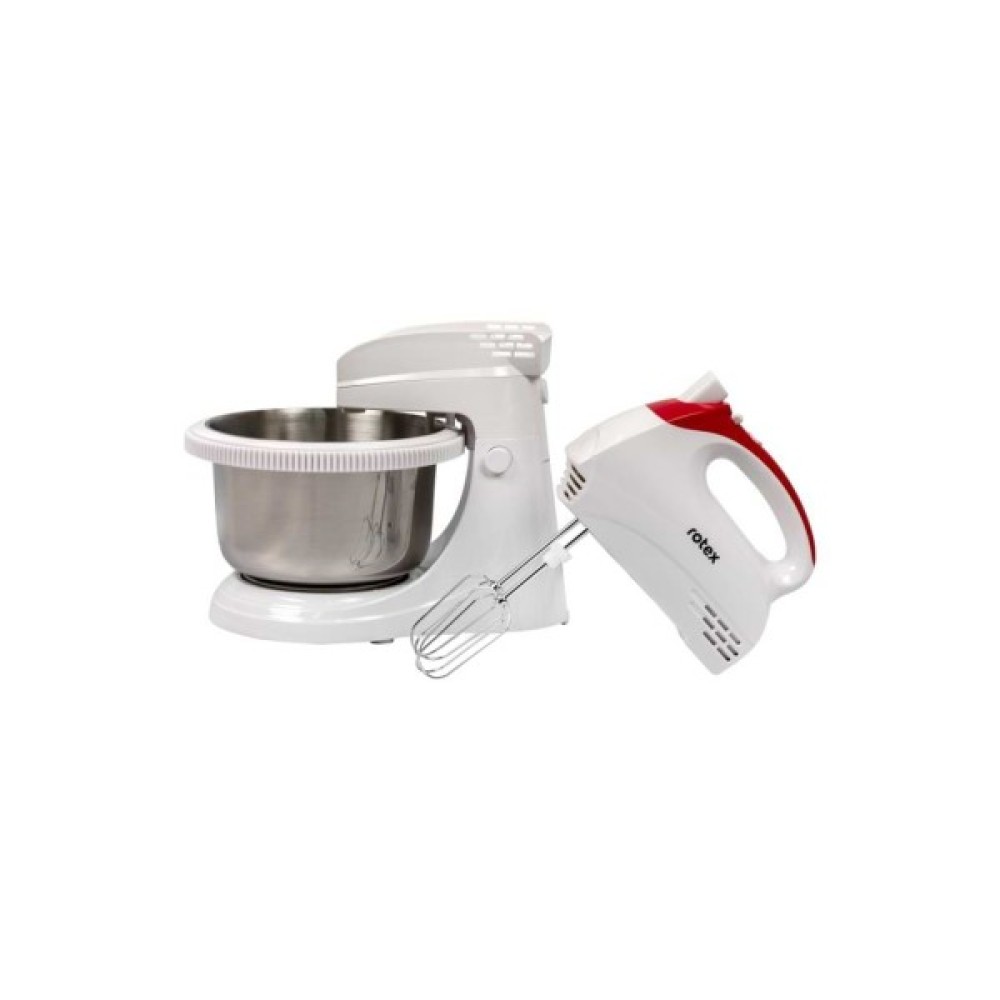 Міксер Rotex RHM 300-K- зручний в використанні міксер швидко і легко допоможе приготувати улюблені смачні страви: пироги, кекси, вершки, муси, йогурти і т.д., процес приготування, яких передбачає за собою збивання. Rotex RHM300-K компактний і дуже простий у використанні. Ця модель має масу переваг, які допоможуть у приготуванні різноманітних страв: висока потужність, вибір швидкісних режимів роботи, насадки для замішування тіста і збивання продуктів.