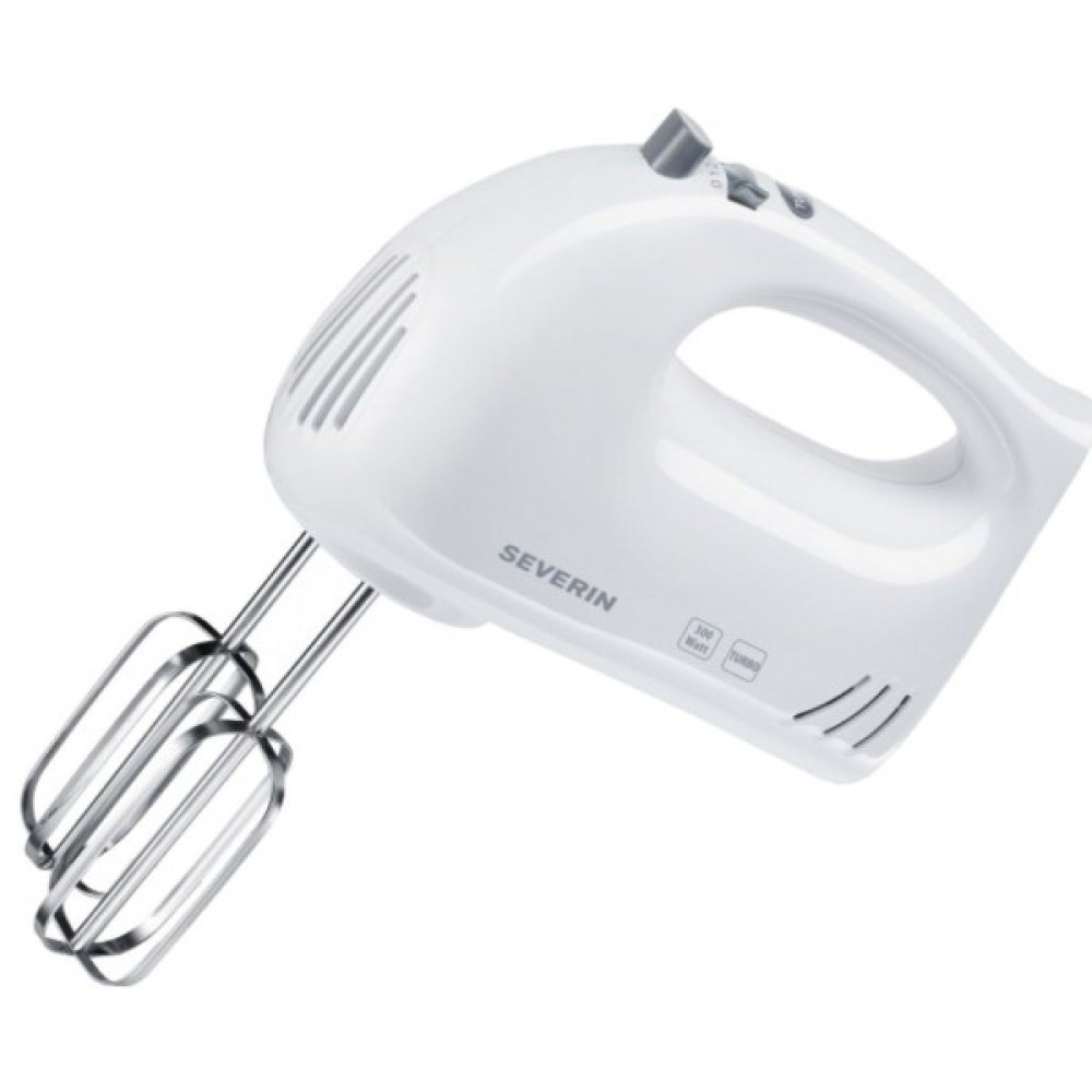 Міксер Severin HM 3822 - це пристрій ручного типу. Він виконаний в зручному форм-факторі, розрахованому на зручну посадку в долоні. Ергономічна ручка чіпко сидить в руці, і ви не упустите прилад під час експлуатації. На верхній частині корпусу розташовуються механічні елементи керування, дістати які можна великим пальцем тримаючої руки. Перемикаємий важіль регулює швидкості, а кнопка TURBO включає надшвидкий режим.