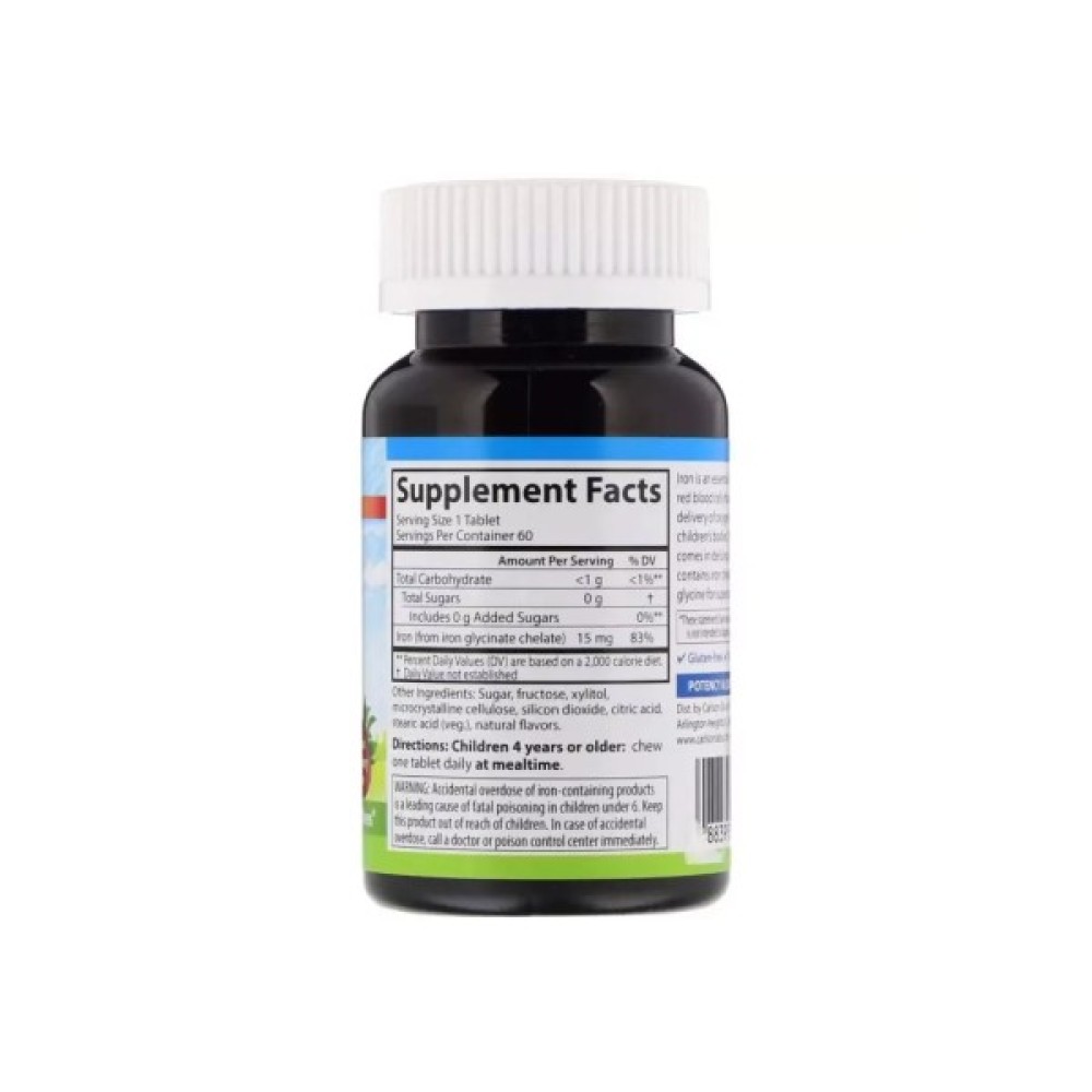 Мінерали Carlson Залізо Дитяче, 15 мг, смак полуниці, Kid's Chewable Iron, 60 жуватий (CAR-55940)