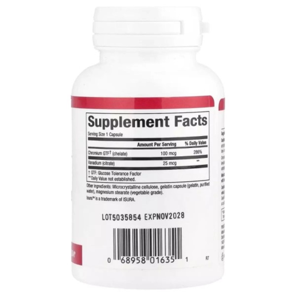 Ванадій є біологічно важливим металом, необхідним для нормальної функції клітин та їх розвитку. Ванадій допомагає підтримувати рівень цукру в крові на здоровому рівні завдяки своїм інсуліноподібним ефектам у тканинах печінки, скелетних м'язах та жировій тканині (жир, який оточує наші органи). Хром є мікроелементом, який відіграє значну роль у регулюванні рівня глюкози та холестерину. Хром також здатний посилити дію ванадію.