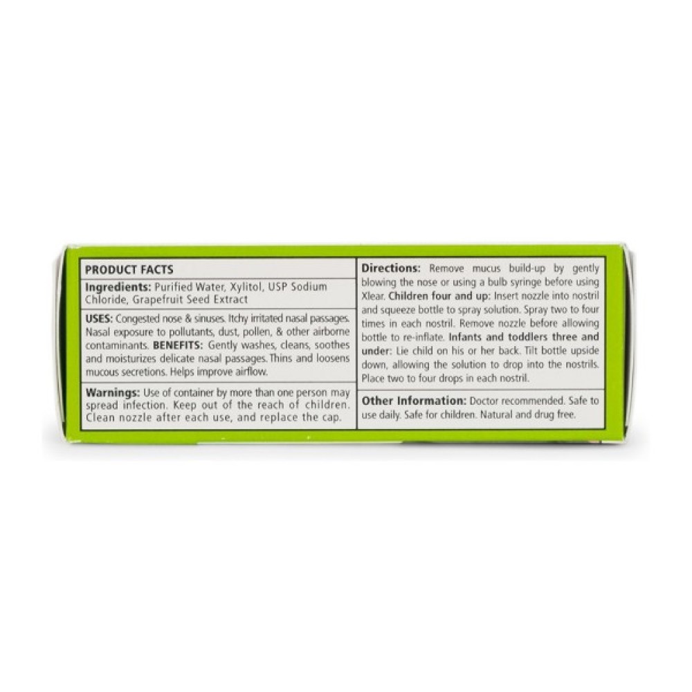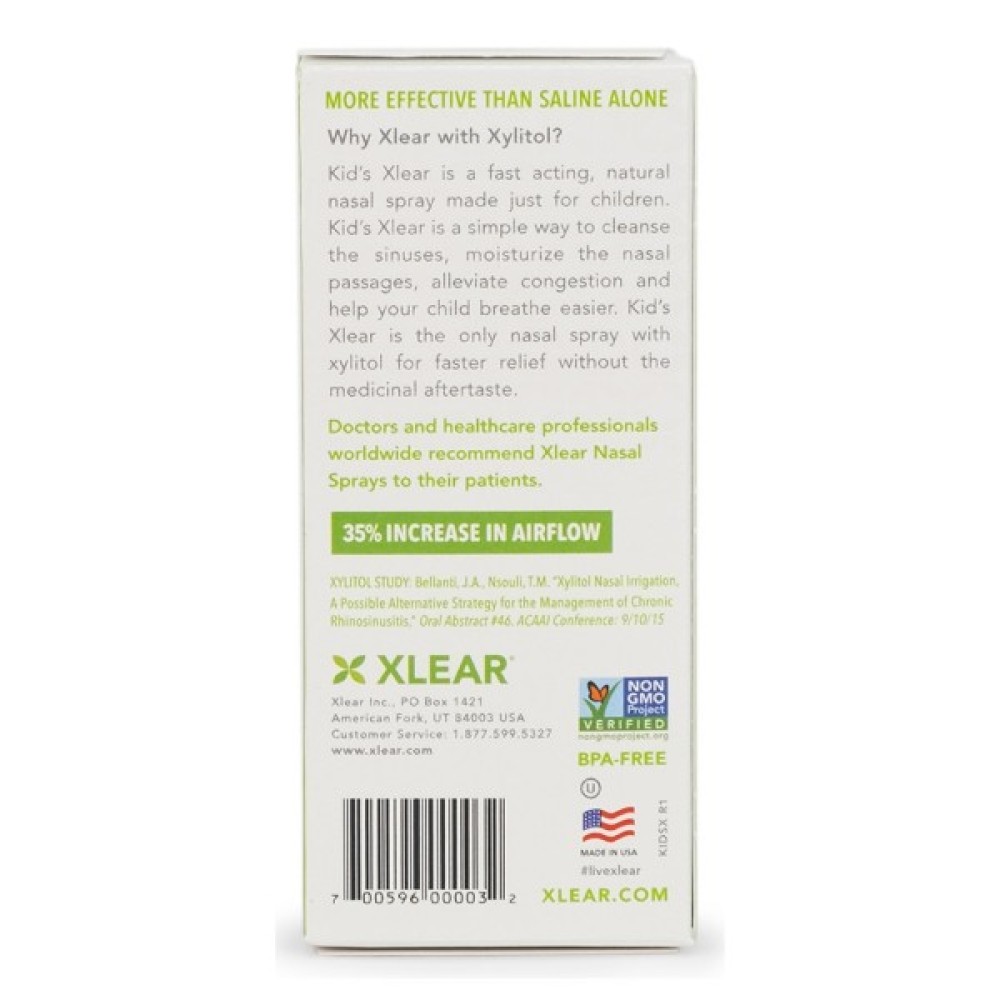 Xlear Дитячий натуральний сольовий назальний спрей із ксилітом розроблений спеціально для дітей. Це зручний для дітей назальний спрей, що не містить медикаментів, з ксилітом — натуральним інгредієнтом, що очищає і зволожує.