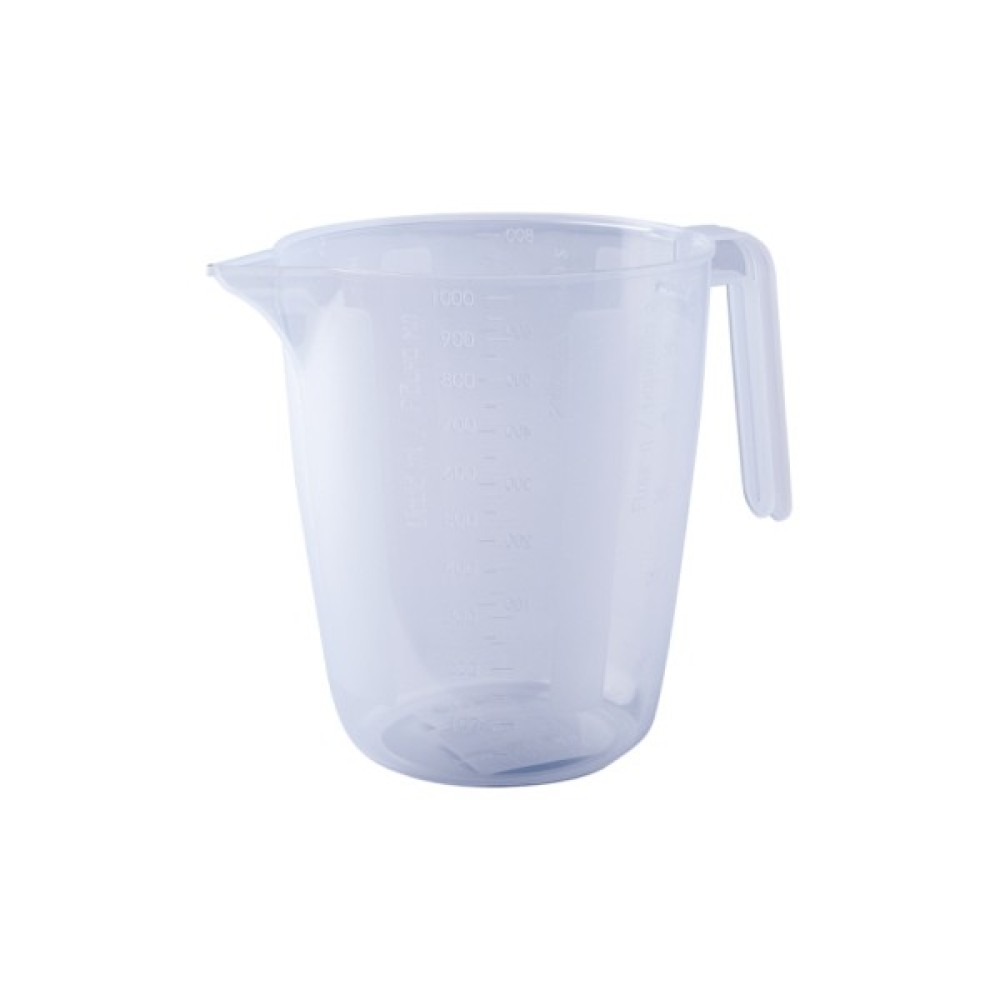 Матеріал – харчовий пластик. Об'єм: 1 л. На склянці нанесено мірну шкалу. Колір: прозорий, блакитний, салатовий. Використовується для вимірювання рідини, а також сипучих. Має зручний носик для зливу. Можна мити в посудомийній машині. Потрібна річ на будь-якій кухні.