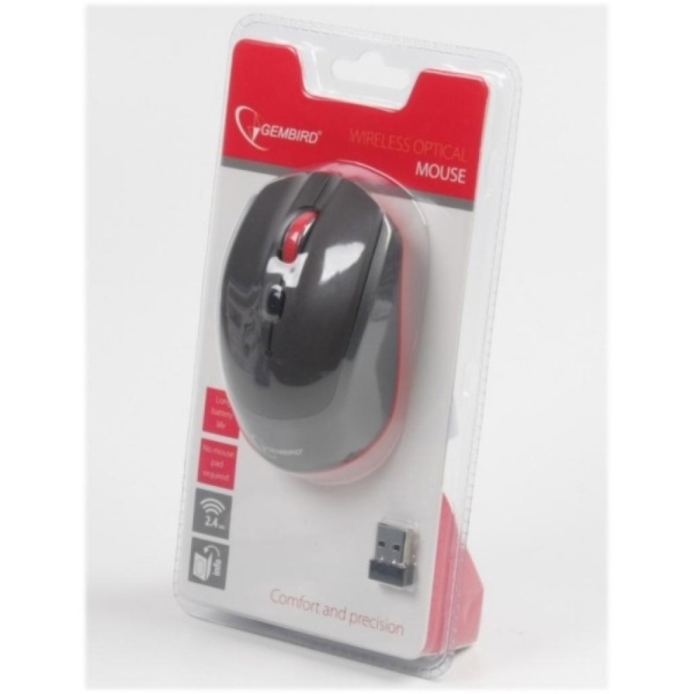 Важлива перевага цієї моделі – зручне живлення від однієї батарейки AA, що значно спрощує обслуговування пристрою. Крім функціональних звершень, Gembird MUSW-202 виглядає на відмінно завдяки стильному чорному кольору з яскравими червоними елементами, що надають їй оригінальності та виразності.