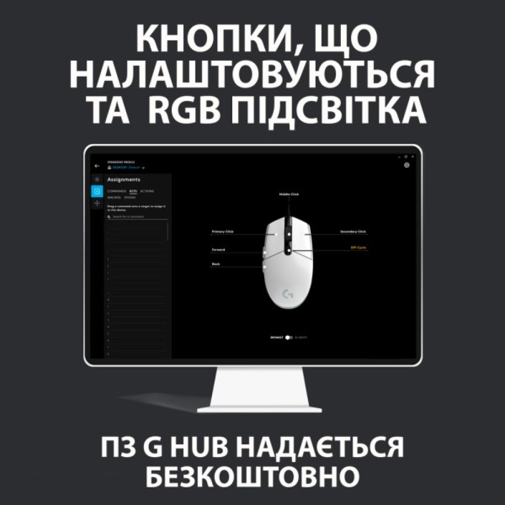 Оснащена оптичним датчиком ігрового класу, ця мишка забезпечує високу точність та чуйну реакцію курсору. Її роздільна здатність досягає 8000 dpi, з можливістю налаштування від 200 dpi, що надає повний контроль над кожним вашим рухом. Завдяки програмному забезпеченню Logitech G HUB, ви можете створювати до 5 різних пресетів чутливості і легко перемикатися між ними, що робить цю мишку надзвичайно гнучкою у використанні.
