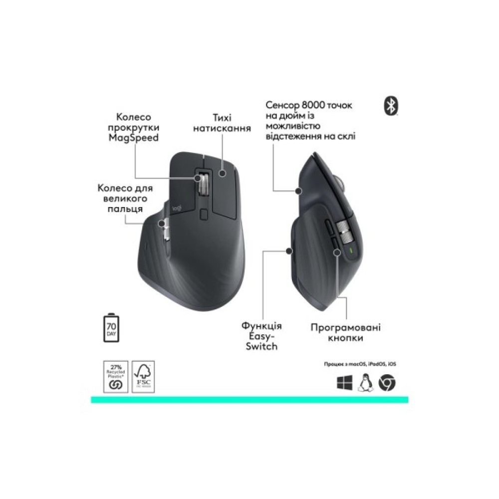 Ця мишка є унікальним синтезом інновацій та практичності. Logitech MX Master 3S Performance стає не просто помічником, а й надійним партнером у досягненні поставлених цілей, допомагаючи вам розкрити ваш творчий потенціал і досягти нових висот у будь-яких завданнях. Її характеристики стануть запорукою вашої впевненості у кожному кроці до успіху.