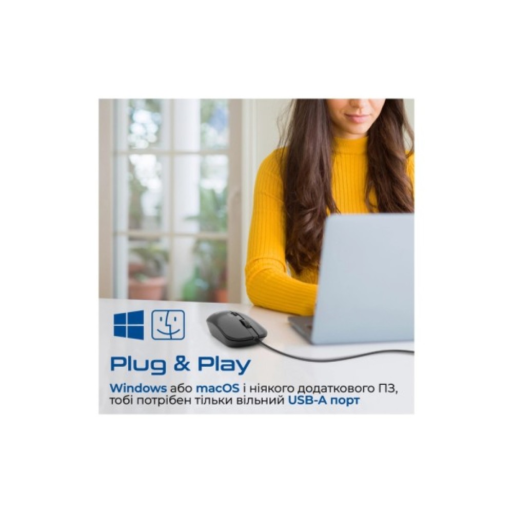 Особливої уваги заслуговує кабель довжиною 1.5 м з USB-A інтерфейсом, якісний ПВХ покриття якого попереджає утворення заломів і поломок у місцях з'єднання. Цей довгий та надійний кабель без труднощів досягне задньої панелі вашого ПК, забезпечуючи зручність розташування на робочому столі. Функція Plug & Play усуває необхідність встановлення додаткового програмного забезпечення: просто підключіть і починайте користуватися!