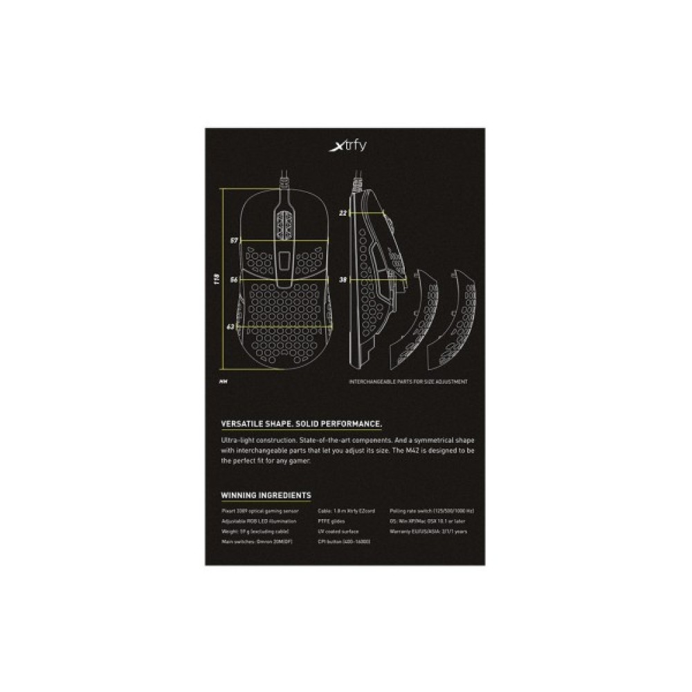 M42 від Xtrfy – це не просто мишка, а ваш ключ до незабутнього ігрового досвіду. З таким знаряддям кожен геймер почуватиметься у впевненості та контролі, незалежно від жанру гри. Обирайте M42 RGB Miami Blue і насолоджуйтесь іграми на новому рівні якості та комфорту.