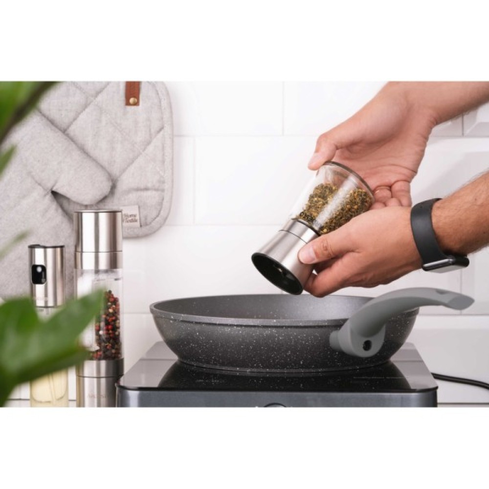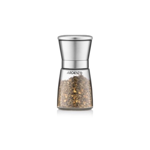 Млинок для солі та перцю ARDESTO Gemini об’ємом 180 мл виготовлено з нержавіючої сталі та міцного скла. Має керамічне лезо. Робота млинка здійснюється шляхом обертання рухомої частини. Оснащений функцією регулювання ступеню помелу. Мити в посудомийній машині не можна.