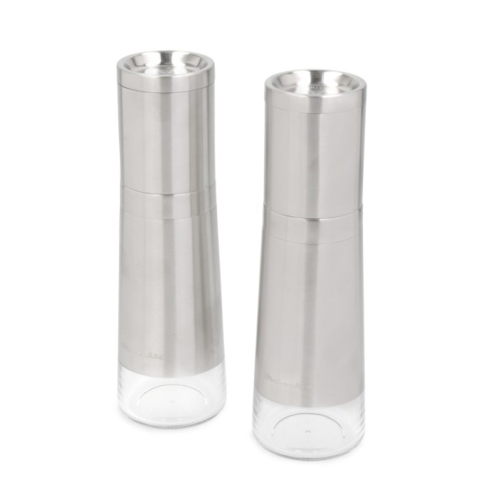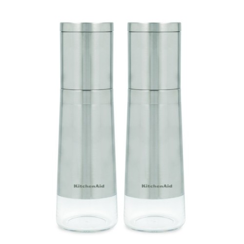 Легко додайте стравам смаку за допомогою цього набору для солі та перцю від KitchenAid. Ці незамінні, регульовані інструменти оснащені керамічним механізмом, який легко та акуратно розподіляє дрібний або грубий помел. Кришки, що відкручуються, дозволяють швидко та легко наповнювати набір, а прозоре віконце показує, коли вміст закінчується. Виготовлена з міцної нержавіючої сталі з антикорозійним керамічним механізмом для тривалого використання. Тільки ручне миття.