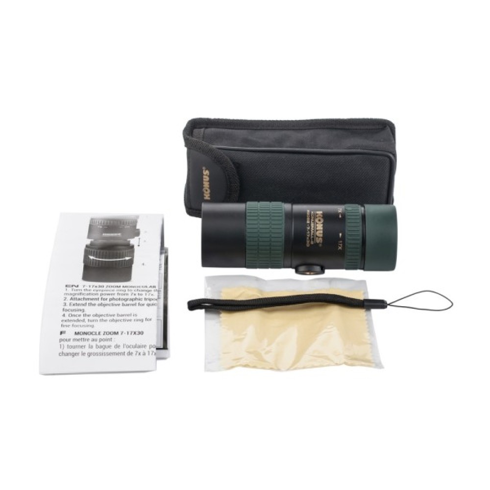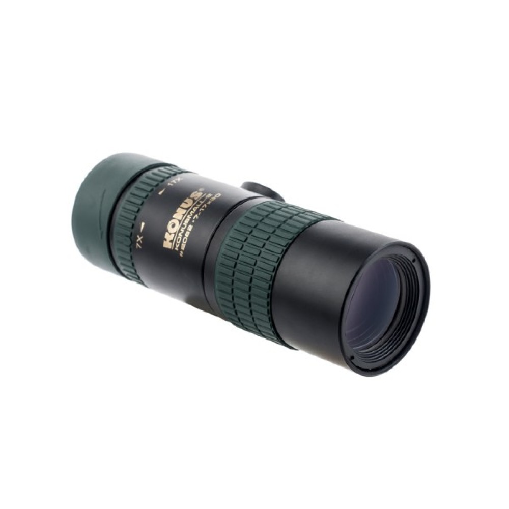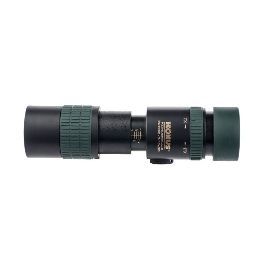Монокуляр Konus Konusmall-2 7-17x30 — компактний zoom-монокуляр із подвійною системою фокусування й роз'ємом для фотоштатива. Під час роботи на кратностях до 10-12х встановлення приладу на штатив не потрібне, але на великих збільшеннях воно дасть змогу стабілізувати зображення, що тремтить через вібрацію рук.