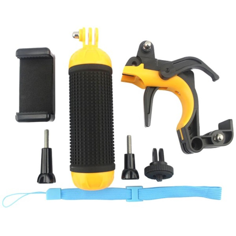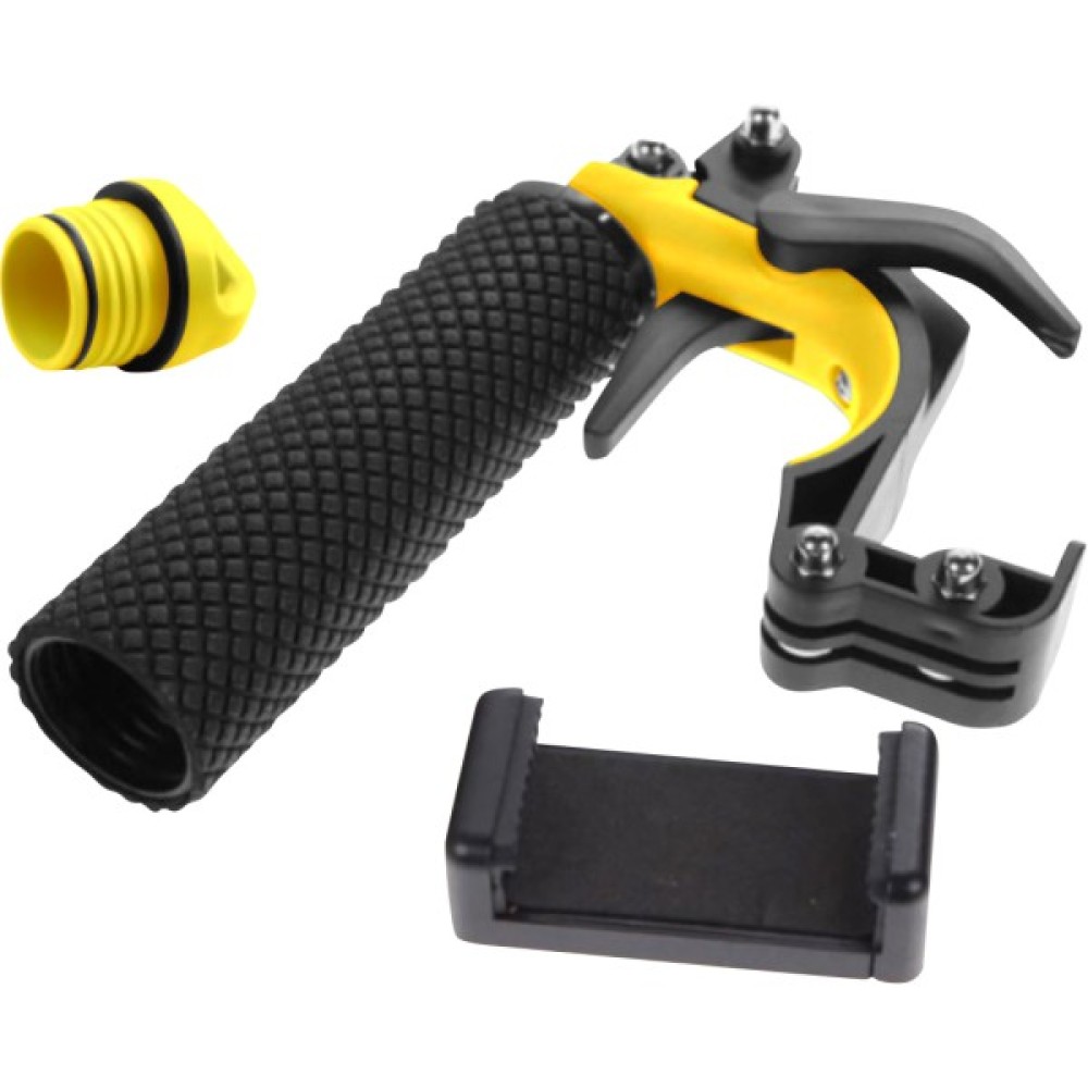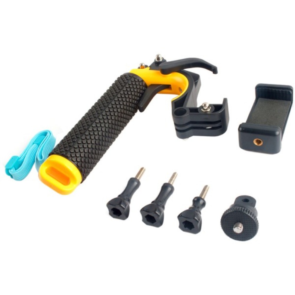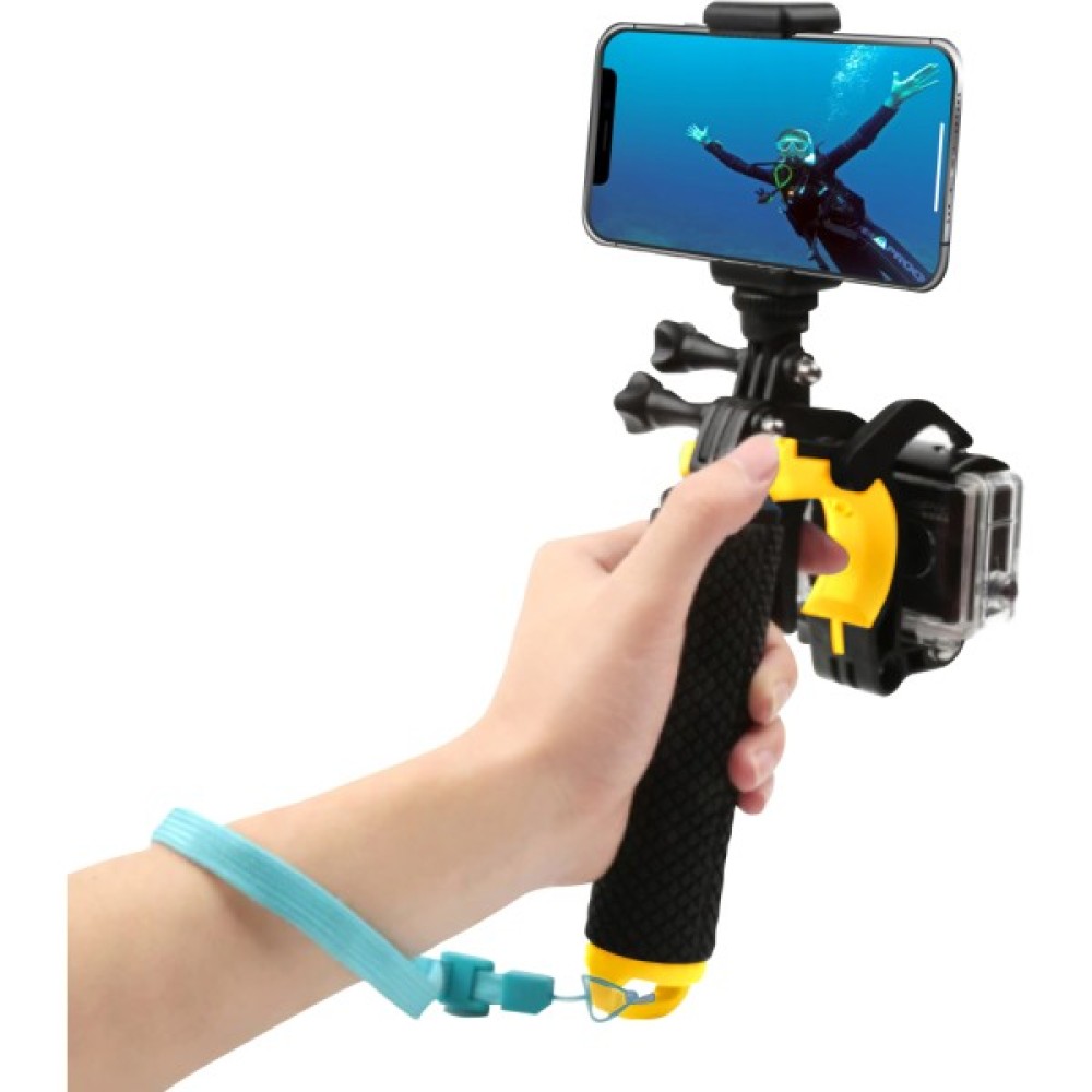 Кріплення для камери та смартфона також обладнане ковзкою ручкою-поплавцем. Це означає, що можна створювати круті відео та фото не лише одночасно на суші, а й у воді. У ручці є невелике внутрішнє сховище для важливих дрібних речей, які не хочеться втратити під час прогулянки або запливу.