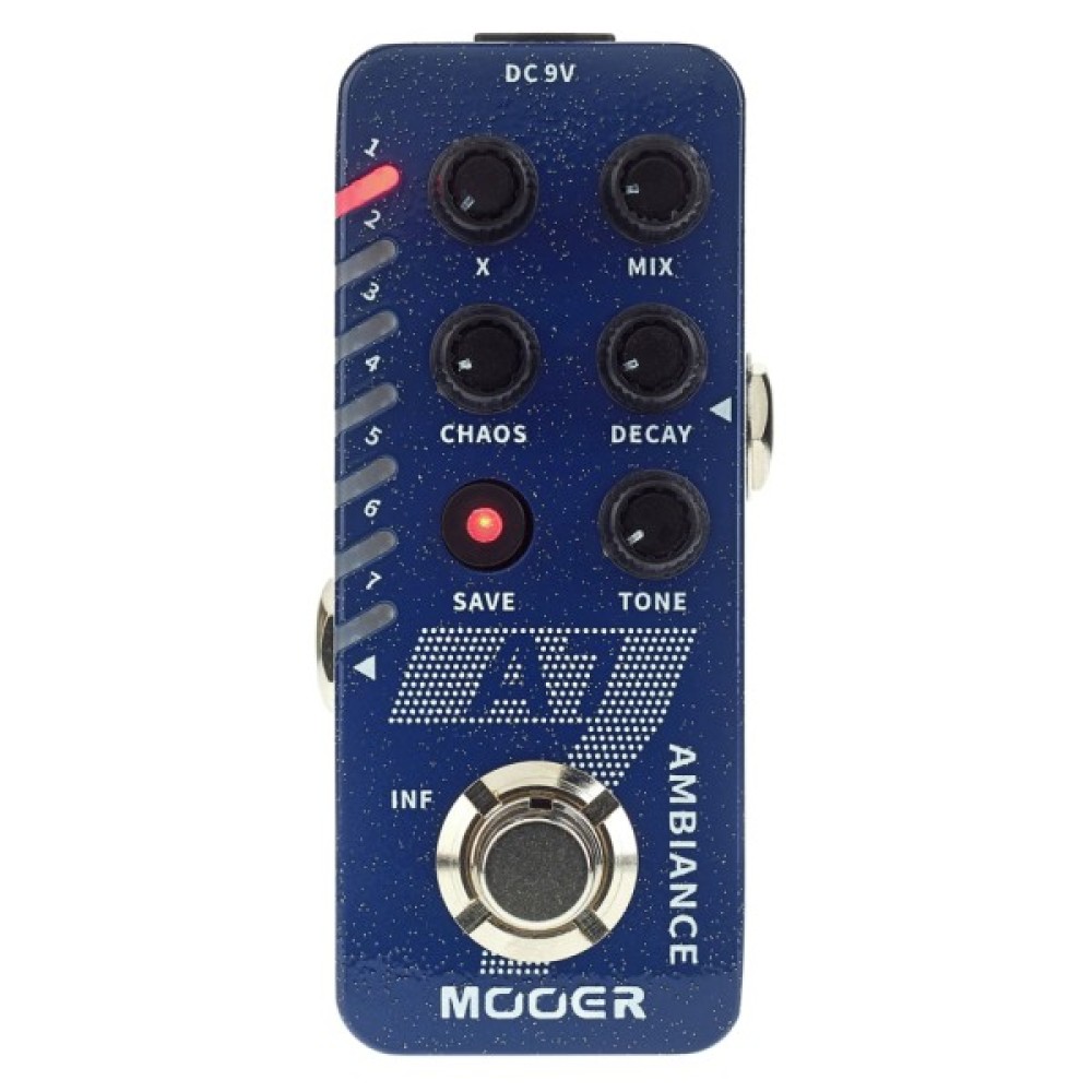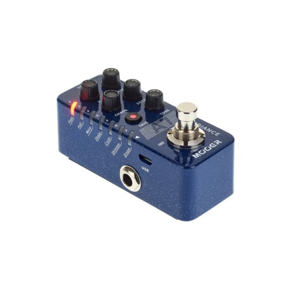 Цей блискучий дорогоцінний камінь має сім різних ефектів реверберації, що підходять для досвідчених гітарних астронавтів і психоделічних космічних курсантів. Відправляйтеся в нескінченність і далі з нескінченними "хвостами" (Infinite Trail) або зберігайте стислість за допомогою традиційної функції "Trail On". Блискучий синій "кузов" також додає відблисків в будь-який педалборд.