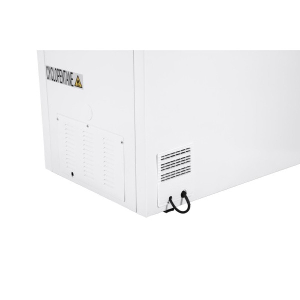 Морозильна скриня білого кольору з електронним керуванням та підтримкою роботи в режимі холодильника. Енергозбереження відповідає класу А+, а корисний об’єм становить 198 л. Час автономного збереження холоду – 21 год.