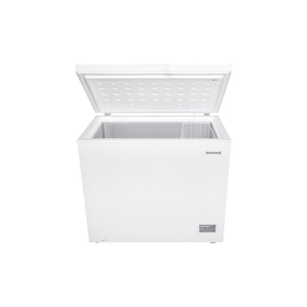 Морозильна скриня Snaige FH26SG-T1000EH має горизонтальну конструкцію з висотою 850 мм, що дозволяє використовувати її як додаткову робочу поверхню або розміщувати в коморі, гаражі чи на балконі. Корисний об’єм 246 л дає змогу зберігати значні запаси м’яса, овочів, ягід чи напівфабрикатів без обмежень по формі упаковки.