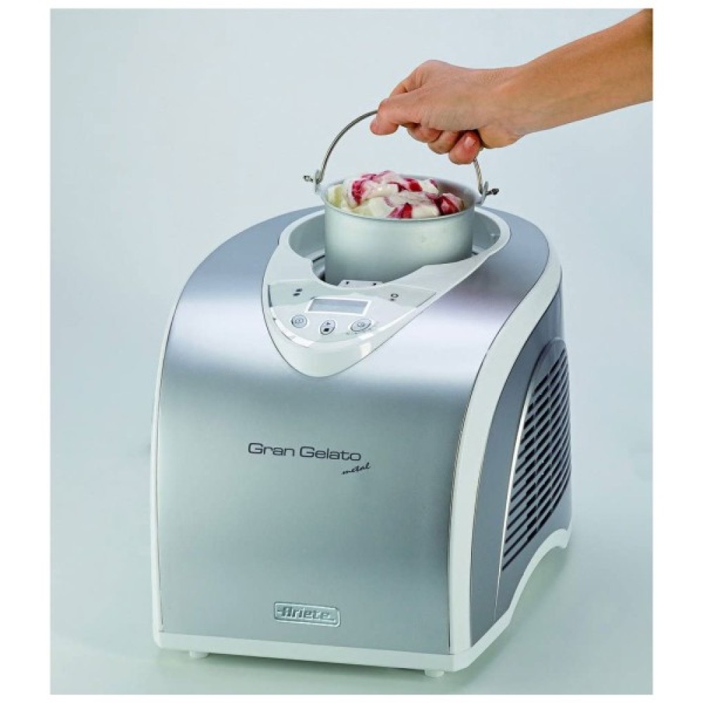 Морозивниця Ariete 693 має LCD-дисплей із цифровим таймером, що робить приготування десерту простим. На дисплеї відображається температура та зворотний відлік часу. Ви завжди будете знати, за якої температури готуються ласощі, і скільки часу залишилося до того моменту, коли ви зможете ним насолодитися. Морозивниця має зручний таймер, який вимикає апарат. Наявність компресора дає змогу насолоджуватися різноманітними сортами ласощів, які будуть ефірними й легкими.