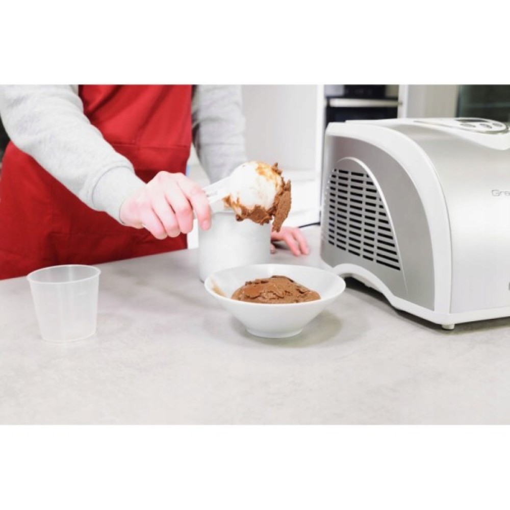 Об'єм знімної чаші 1 л — це дає змогу приготувати 500-700 г морозива за один раз. Хочете почастувати своїх гостей солодким асорті? Тепер це можливо. Після кожного приготування дайте морозивниці відпочити 10-15 хвилин, і можете продовжувати процес. Прилад має функцію зберігання, щоб морозиво не розтануло. Почастуйте близьких і друзів солодкою прохолодою!