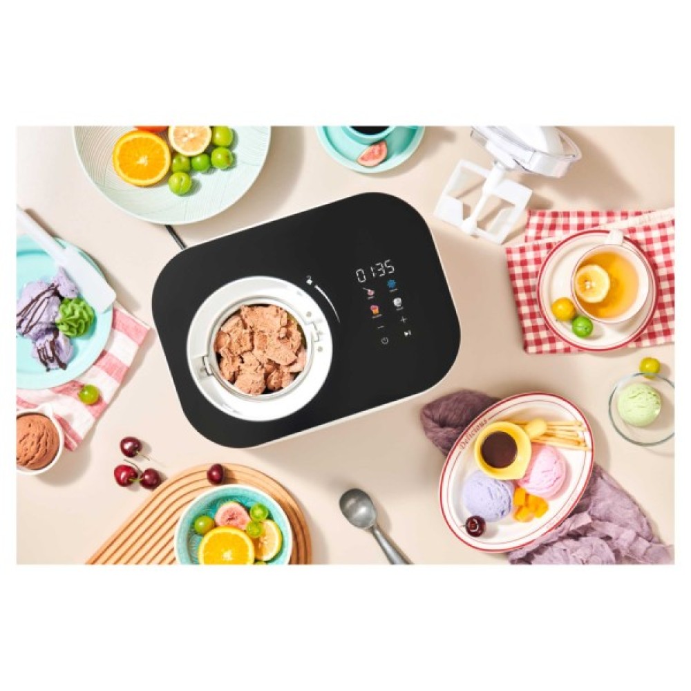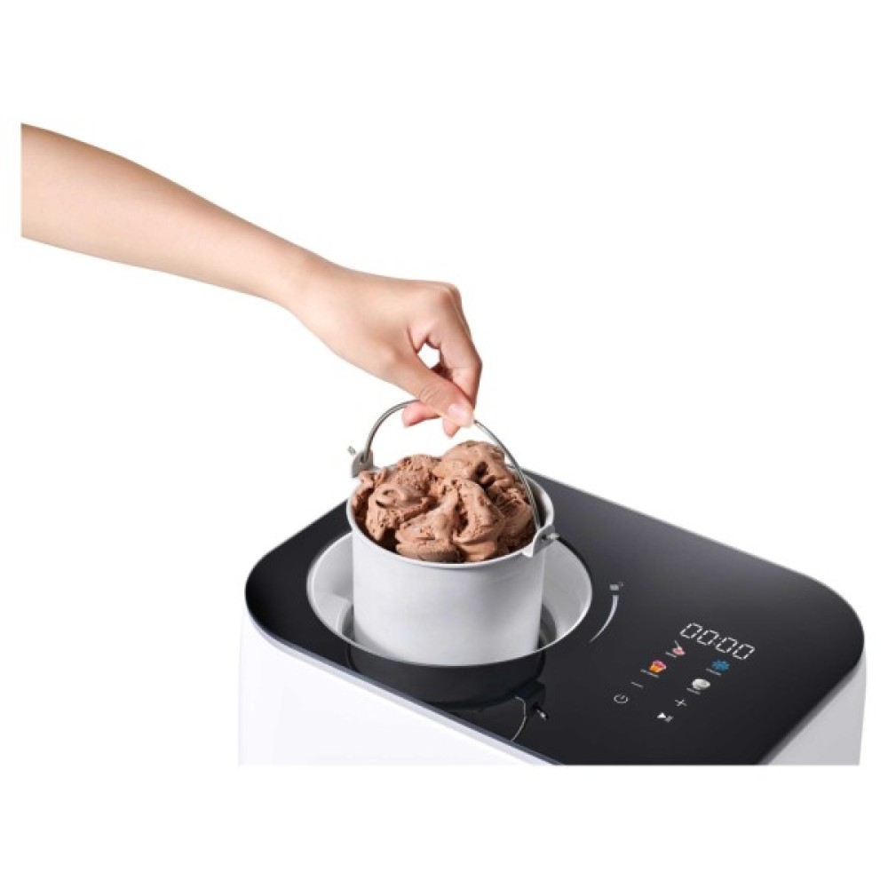 Повністю автоматичний пристрій із вбудованим компресором, що не потребує попереднього заморожування — просто додайте суміш, і вже через приблизно 1 годину готово морозиво або йогурт. Робоча потужність — всього 100 Вт, об’єм чаші — 1 літр, підходить для приготування домашніх порцій десертів.Складники легко очищуються — чаша знімається й мити її просто. У комплекті вже є шпатель і мірна чашка — вам не потрібно нічого докуповувати.