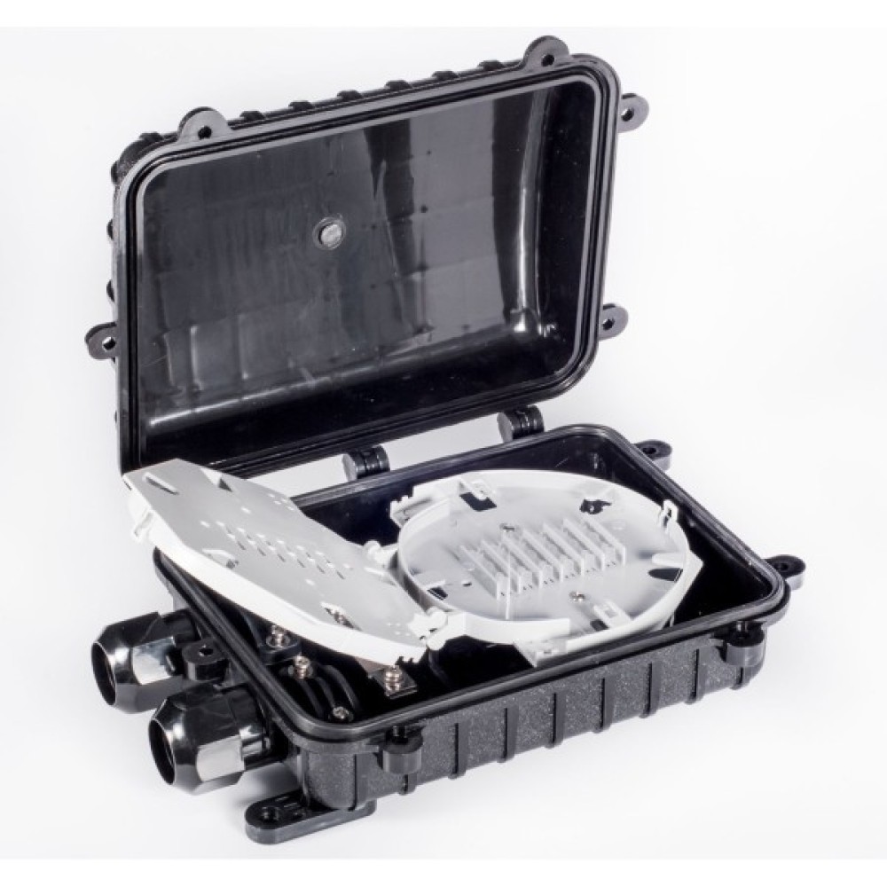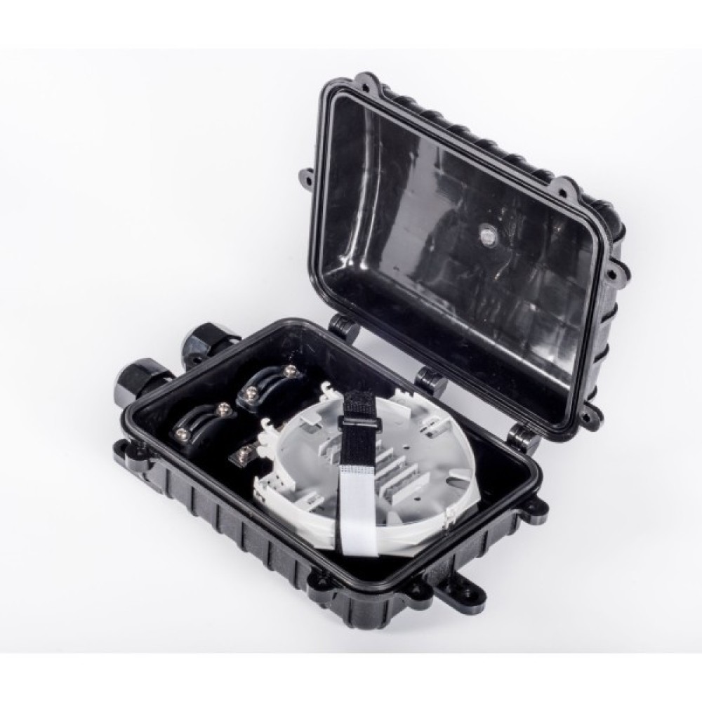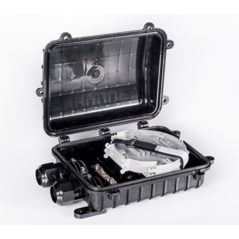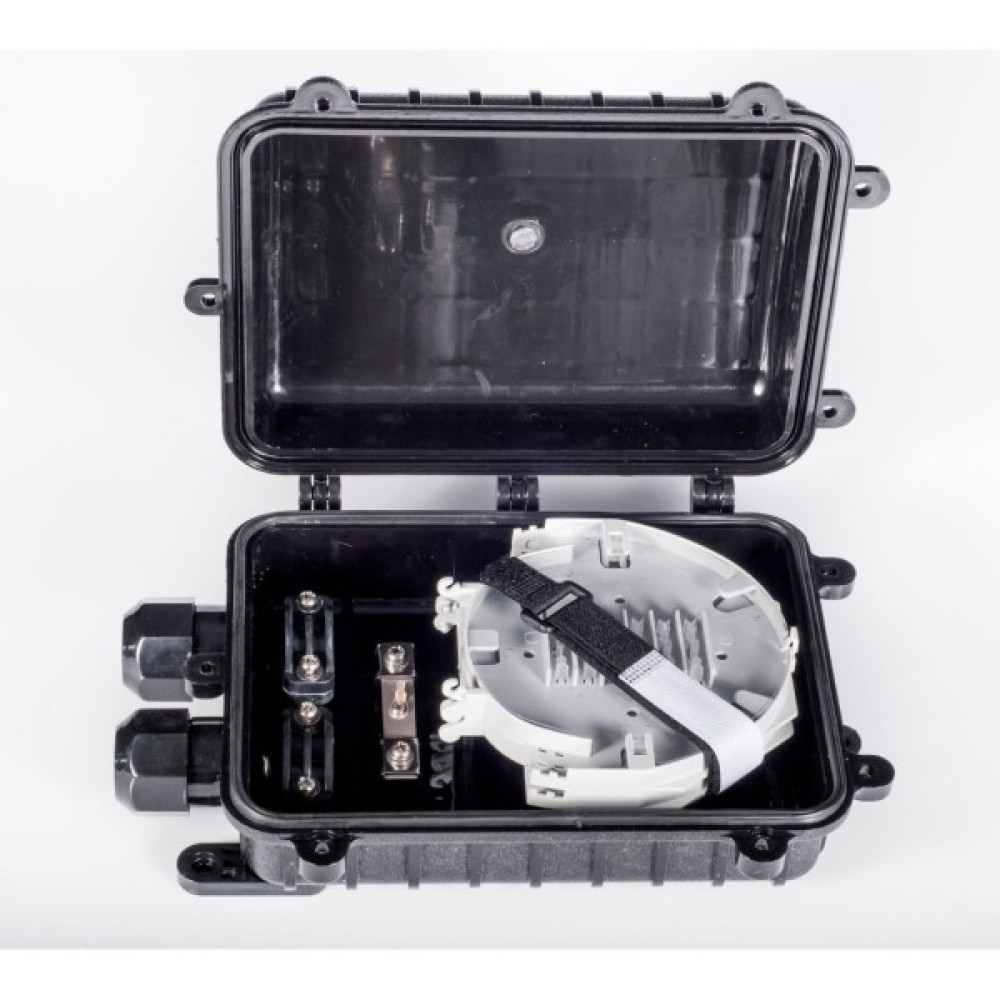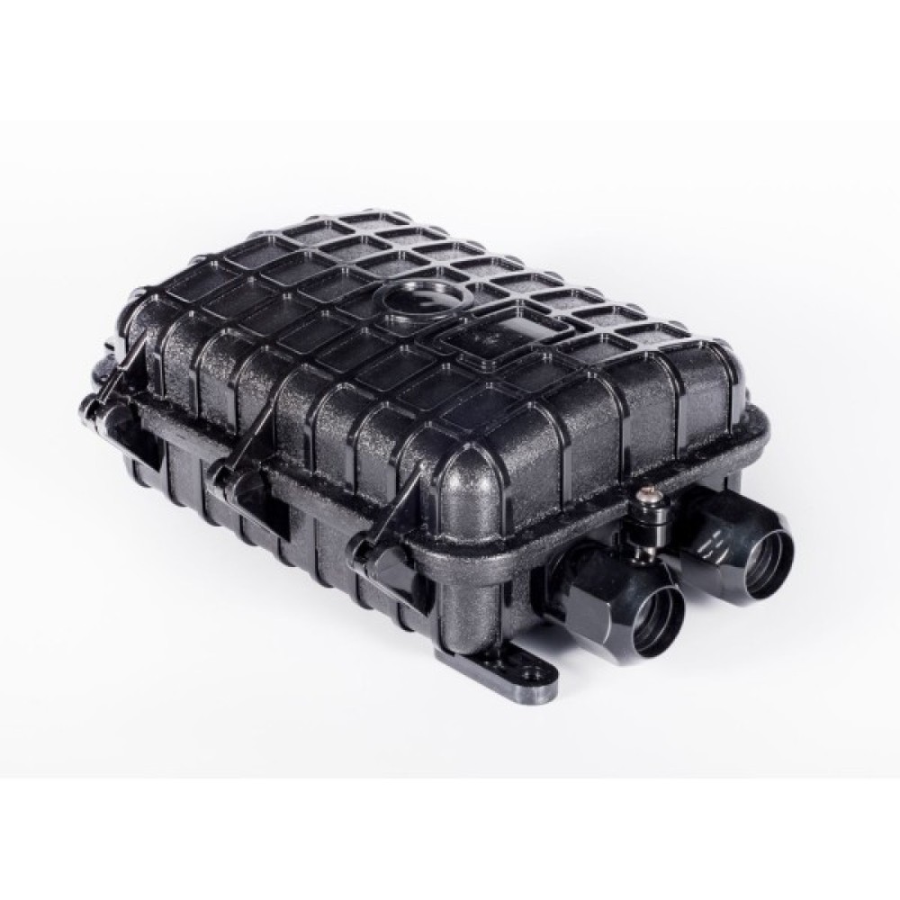 Компактна, тупикова оптична муфта для монтажу в каналах кабельної каналізації, на опорах. Рівень захисту: IP68; УФ-стійкий матеріал виконання. Кріплення до опори монтажною стрічкою та скріпами.