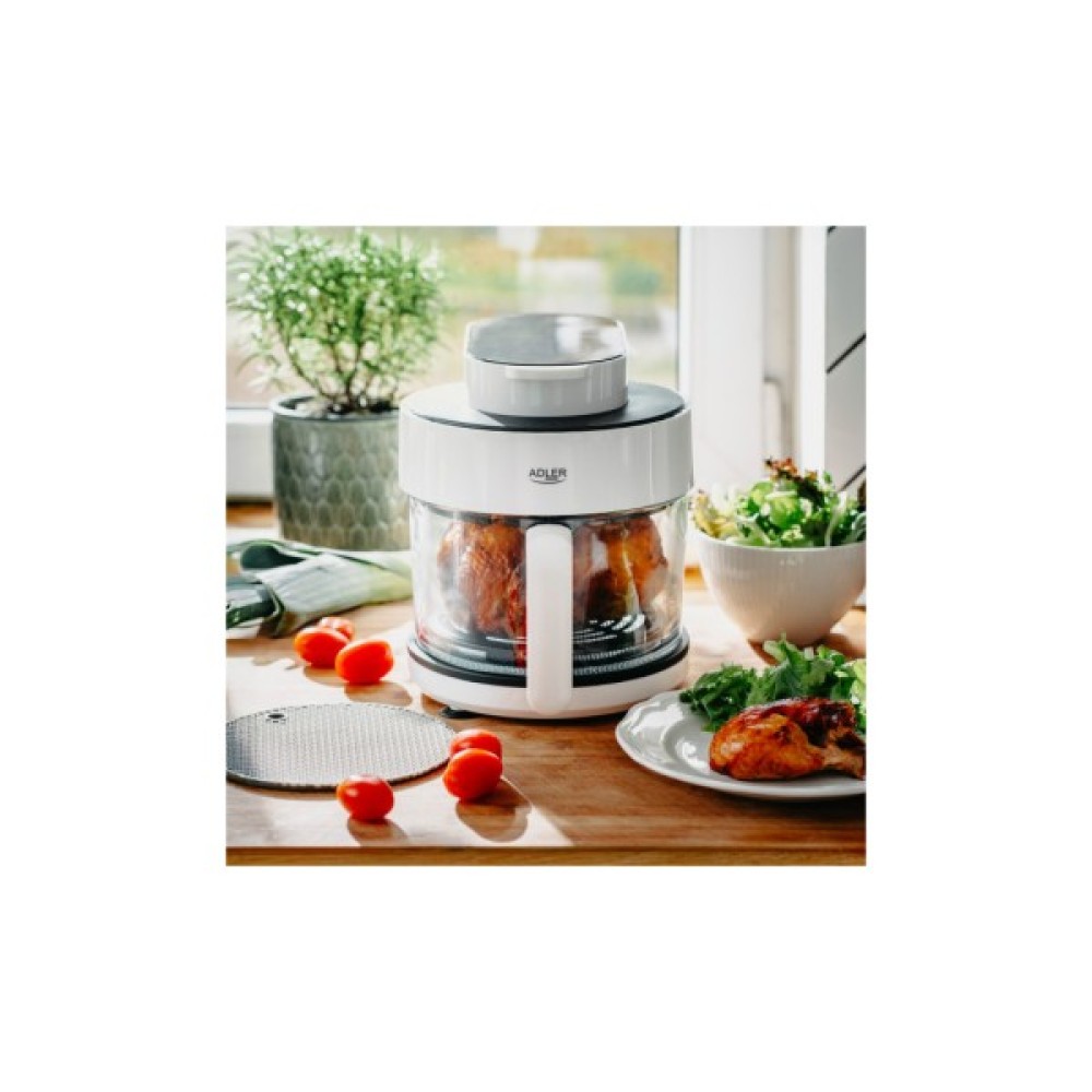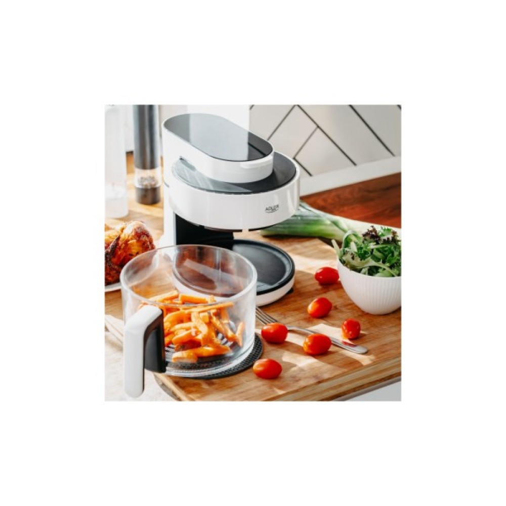З мультипіччю Adler AD 6316 приготування їжі стане для вас захоплюючим процесом – вона оснащена сенсорною панеллю керування із 8-ма найпопулярнішими попередньо встановленими програмами (курячі крильця, ковбаски, картопля фрі, тарт, креветки, стейк, риба, батат) та кнопками регулювання температури їжі (від 80°C до 200°C).