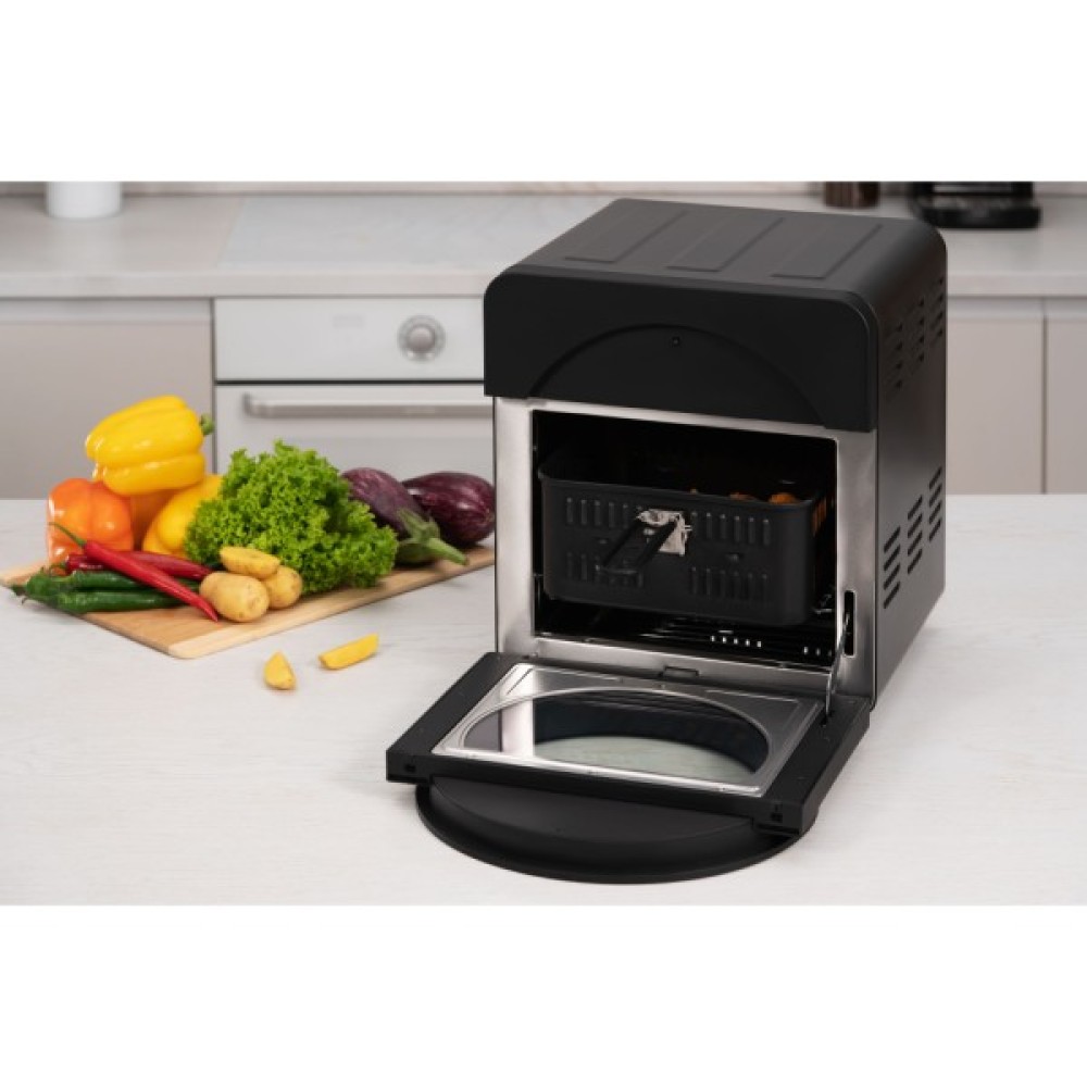 Інноваційні функції, такі як обертання рожна, відкладений старт, розморожування та підтримання температури, а також наявність LED-дисплея, внутрішнього освітлення та сенсорне керування роблять приготування неймовірно легким. Тоді як індикація закінчення процесів, запобіжний вимикач та захист від перегріву зумовлюють безпеку користування.