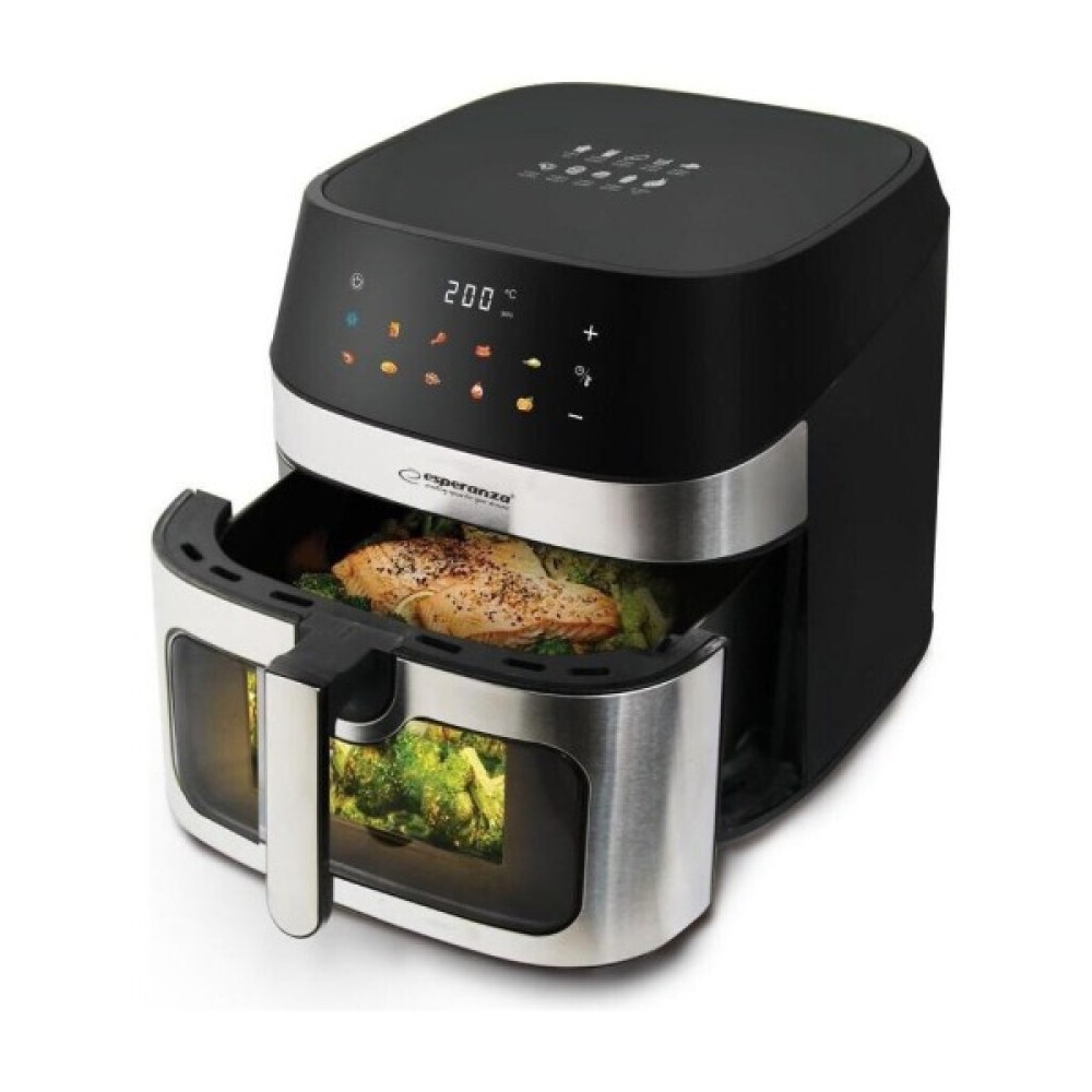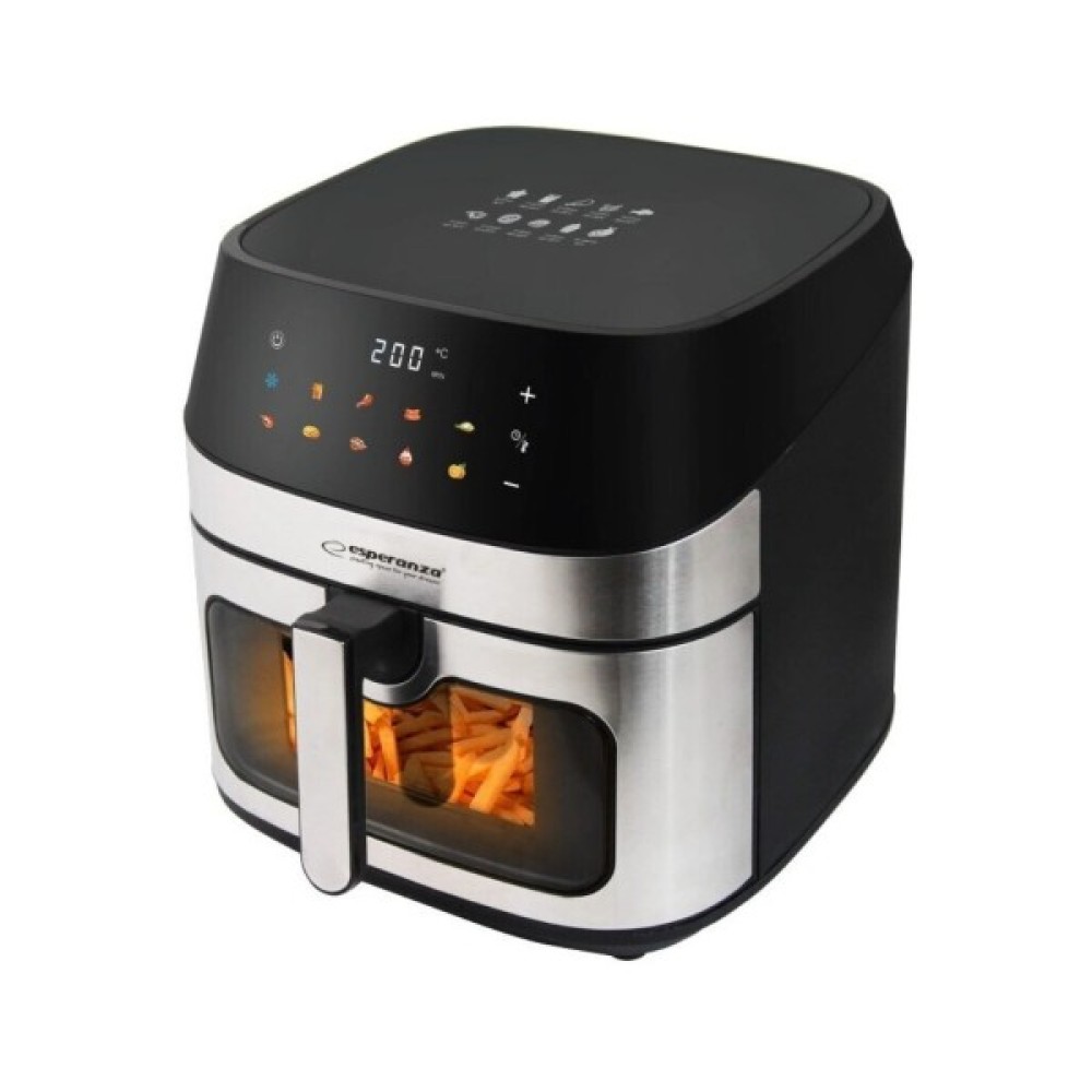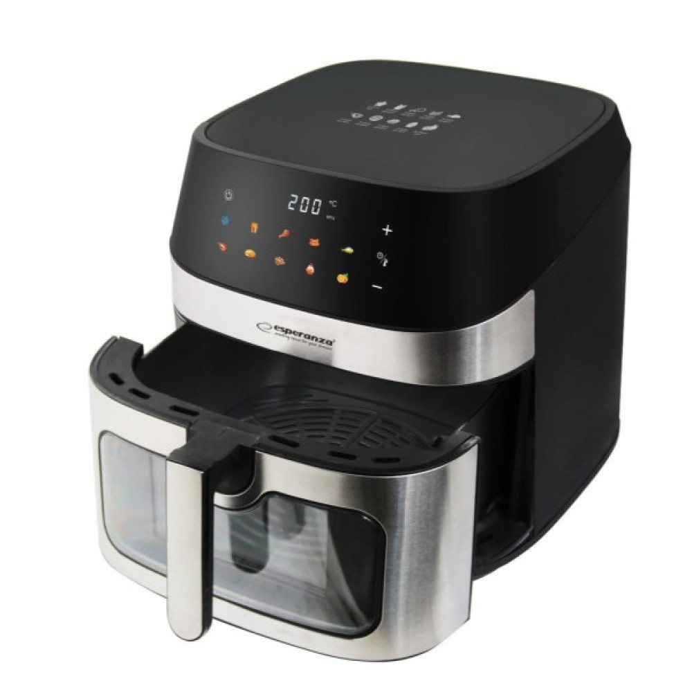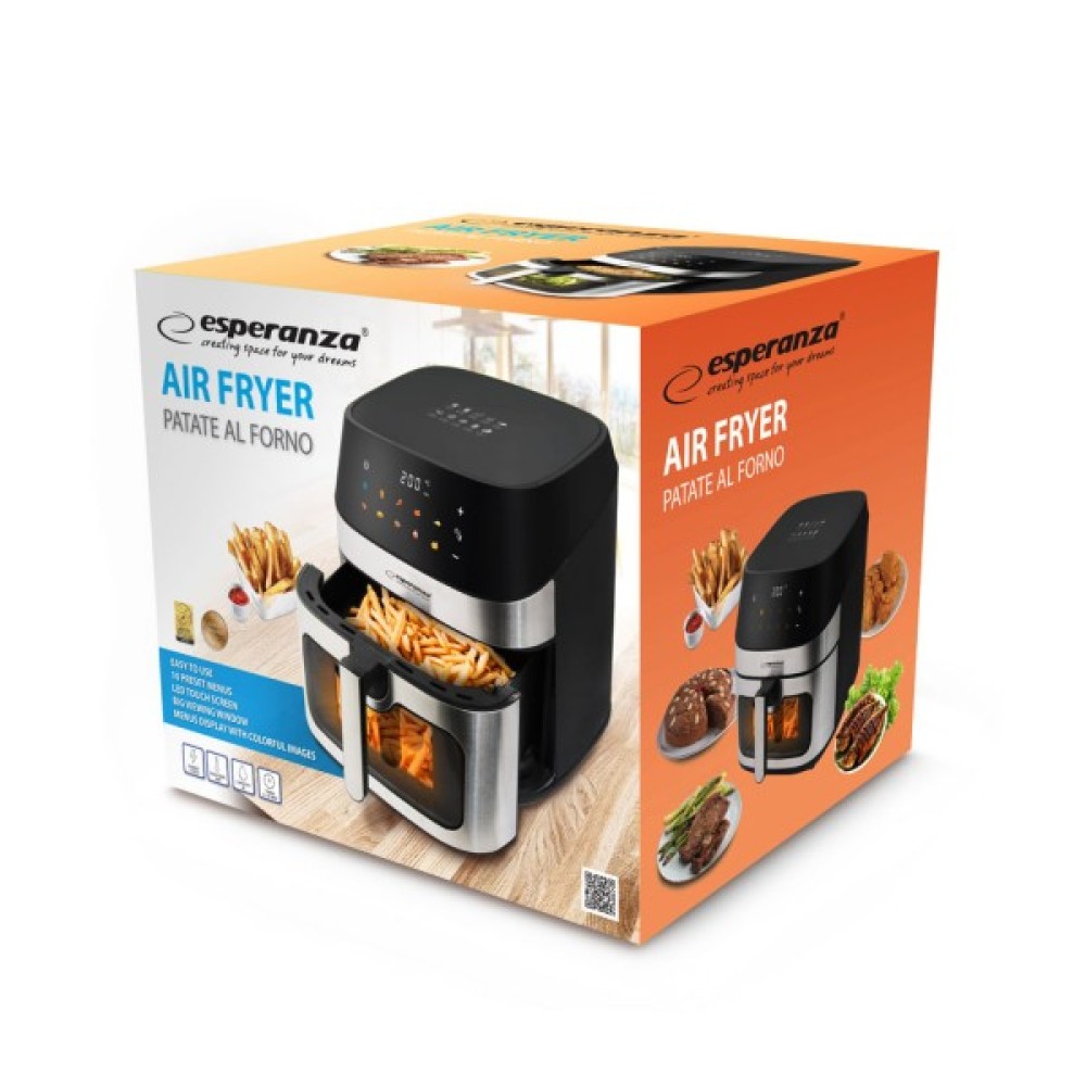 Аеро-фритюрниця Esperanza Patate Al Forno — це сучасний кухонний прилад, що поєднує стильний дизайн, високу потужність та зручність у використанні. Завдяки великій чаші об’ємом 8 літрів ви зможете готувати страви для всієї родини без потреби у великій кількості олії.