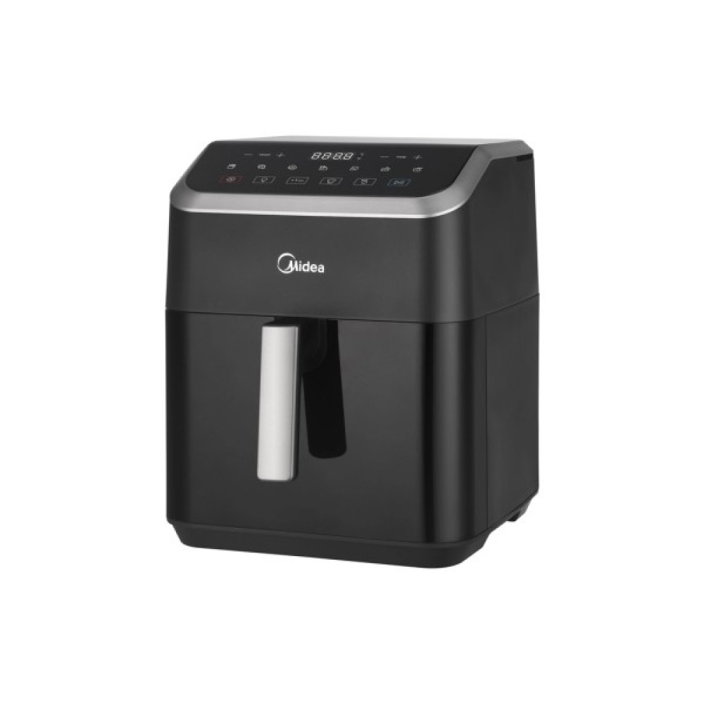 Мультипіч Midea об'ємом 7 л, з технологією HeatXpress, на 90% менше олії, 7 попередніх налаштувань, зручне віконце та підсвічування, з антипригарним покриттям, кошик для миття в посудомийній машині, потужність 1600 Вт.
