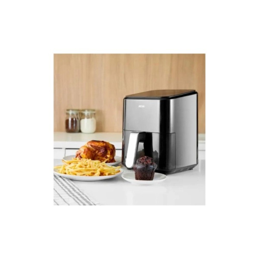 Великий кошик аерофритюрниці дає змогу готувати більше продуктів одночасно. Це особливо корисно під час приготування їжі для великої групи людей або організації вечірок. Ємність кошика 4,5 літра також дає змогу готувати більші шматки м'яса, овочів або інших інгредієнтів нестандартних розмірів. Вам не доведеться турбуватися про те, що продукти пригорять: внутрішня частина кошика покрита антипригарним покриттям, що також полегшує його очищення.