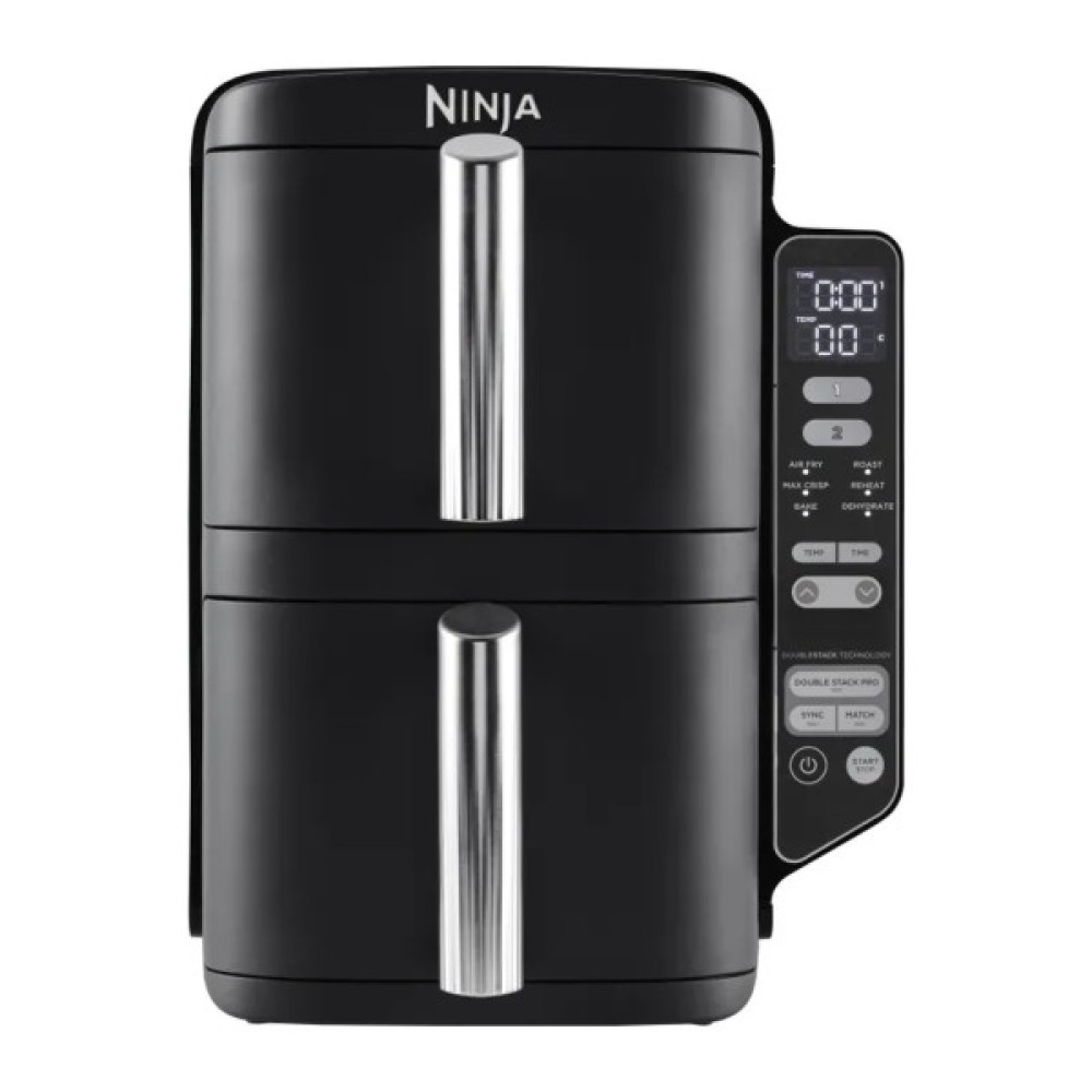 Мультипіч Ninja Double Stack 2-Level Air Fryer 7,6 л — справжня знахідка для тих, хто хоче поєднати смачне з корисним і заощадити час і простір на кухні. Завдяки загальному об'єму 7,6 л з двома незалежними кошиками на 3,8 літра кожен ви зможете одночасно приготувати вечерю для всієї родини на 6 осіб. Чи то соковиті стейки з хрусткою скоринкою, чи запечені овочі, чи навіть свіжоспечений хліб — мультипіч підлаштується під будь-який кулінарний задум. Основний секрет моделі полягає в технології Double Stack Pro, яка дозволяє використовувати чотири рівні для приготування та створює умови для рівномірного нагрівання з мінімумом олії. Уявіть, як зручно готувати одразу дві страви завдяки функціям SYNC і MATCH, коли ви одночасно підсмажуєте картоплю фрі й запікаєте курку до золотистої скоринки. Технології автоматично підлаштовують час і температуру під кожен продукт. Усі знімні частини мають антипригарне покриття, тож ви зможете легко мити кошики та решітки в посудомийній машині.