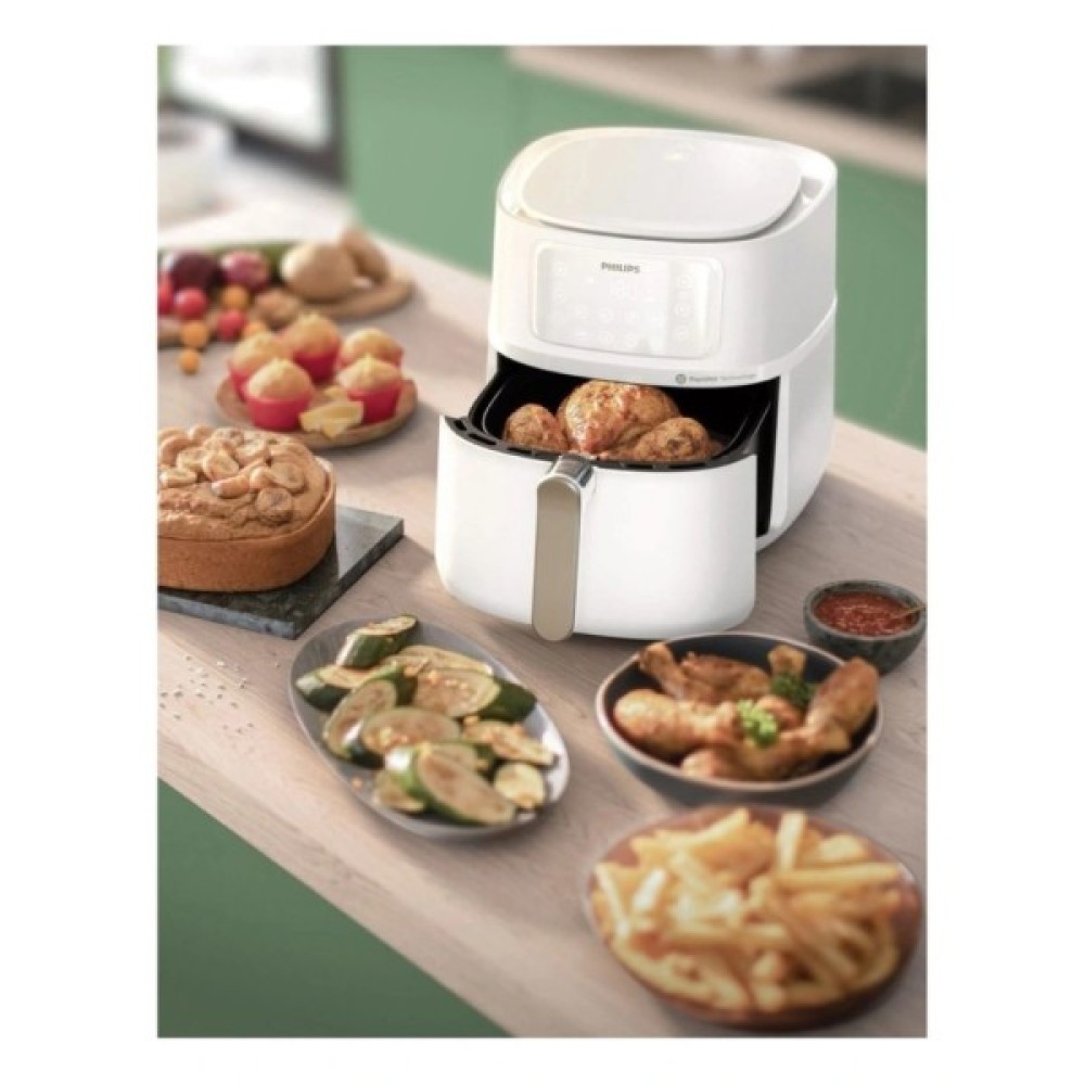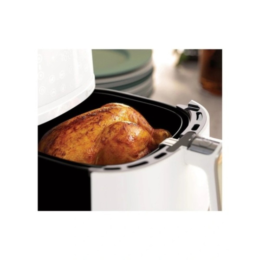 Особливості технологія Rapid Air; антипригарне покриття чаші; встановлення часу приготування; з’єднання wi-fi; регулятор часу; застосунок homeid з рецептами; звуковий сигнал після завершення роботи; внутрішнє покриття без вмісту бісфенолу a; Підтримання тепла; Автоменю; Ємність XXL; Автовимкнення після завершення процесу приготування; Кошик можна мити в посудомийній машині; Знімна кришка; Кошик QuickClean