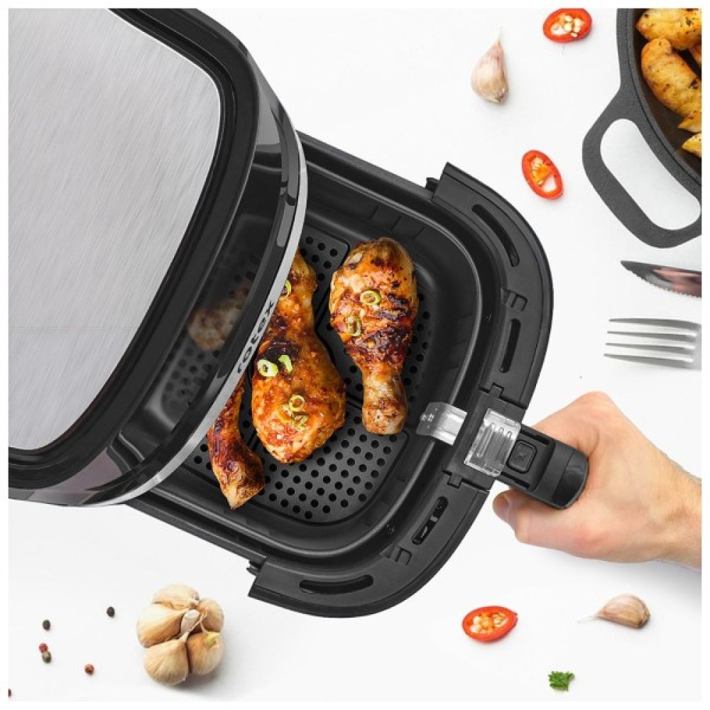 Це сучасний кухонний прилад, який поєднує в собі функції аерофритюрниці та мультиварки, забезпечуючи швидке та здорове приготування різноманітних страв.
