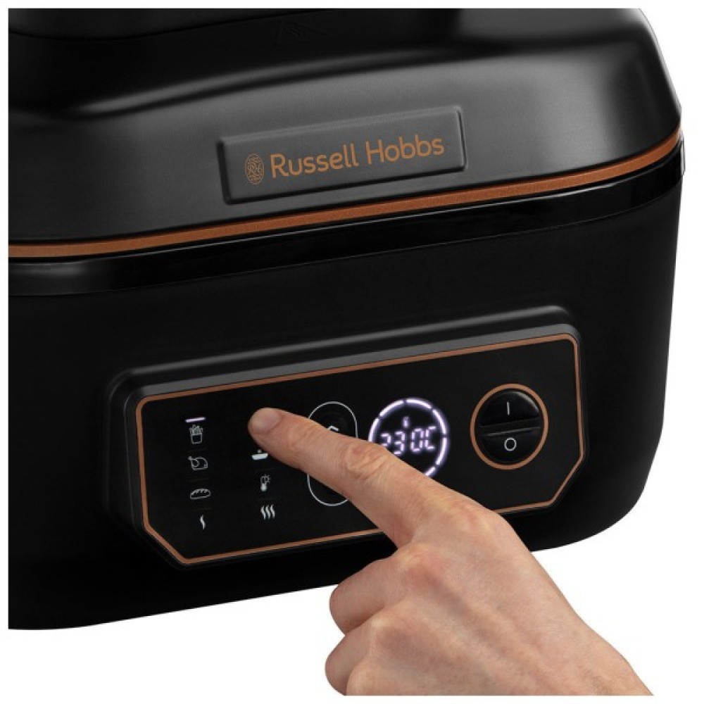 Велика мультипіч Russell Hobbs SatisFry & Grill 26520-56 об'ємом 5,5 л дозволяє легко та швидко приготувати смачні страви, які сподобаються вам та вашій родині. Пристрій має 7 режимів роботи, завдяки чому успішно замінить вам духовку, фритюрницю, електрогриль, мультиварку і сковороду. З невеликою кількістю олії або взагалі без олії ви приготуєте здорову їжу. SatisFry & Grill дозволить вам приготувати до 2,5 кг картоплі фрі на 76% швидше, ніж звичайна духовка.