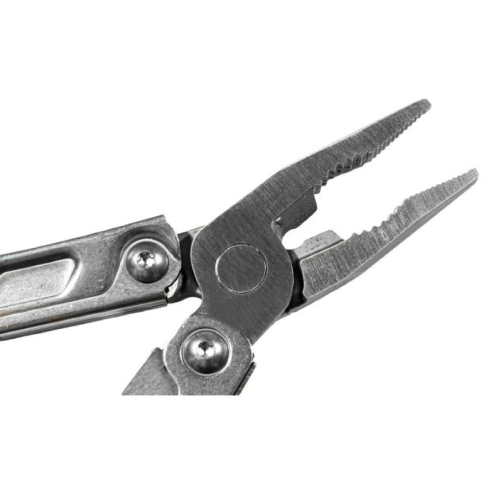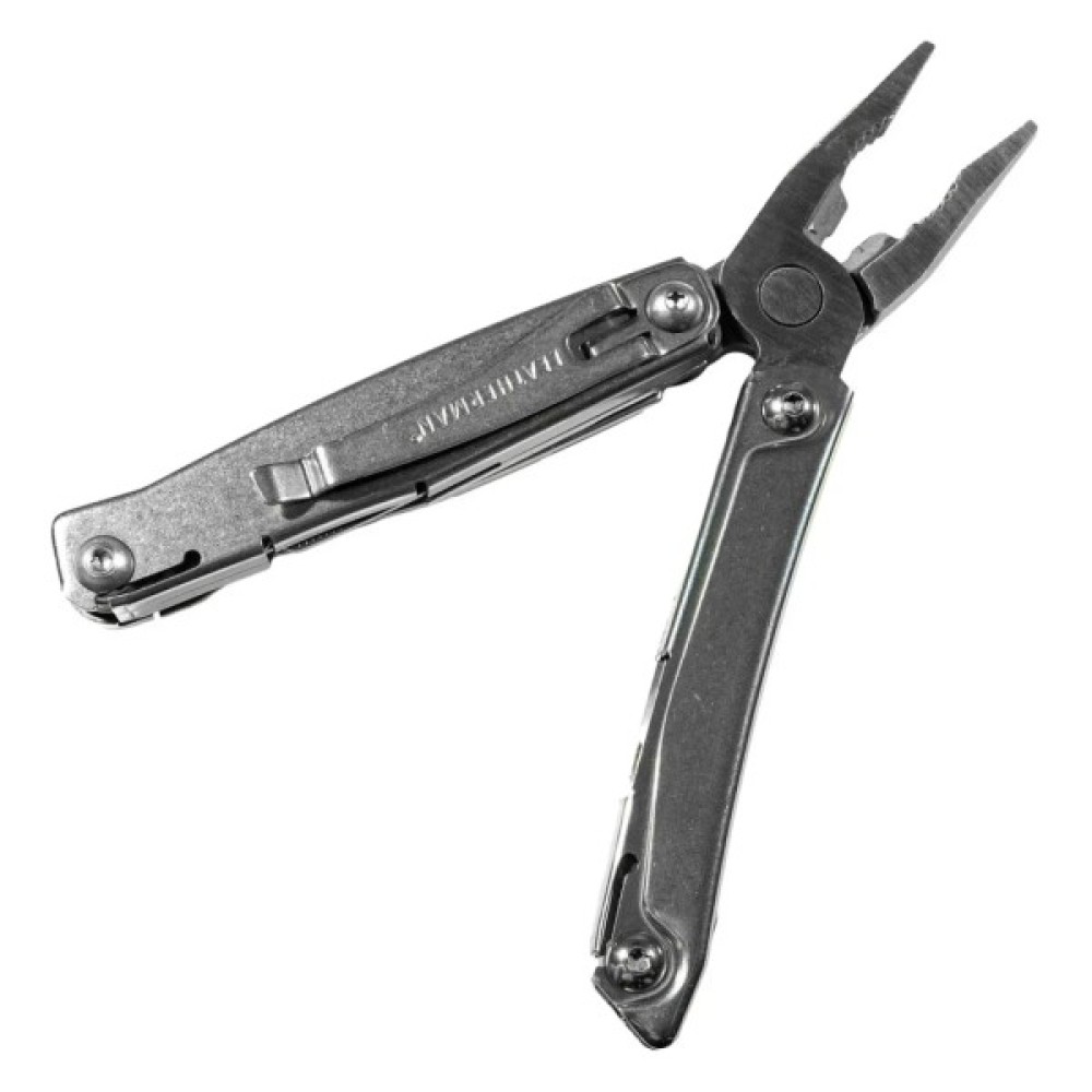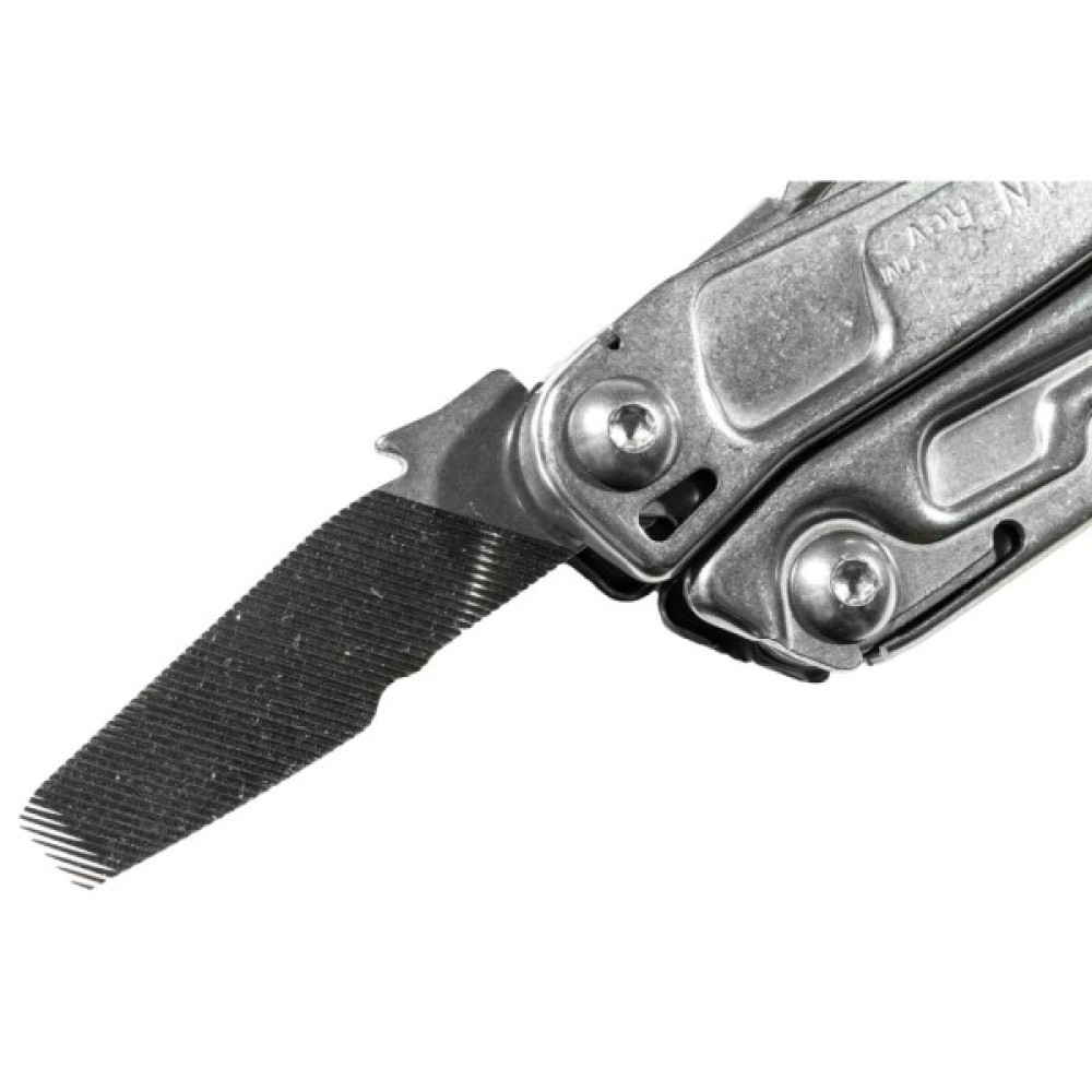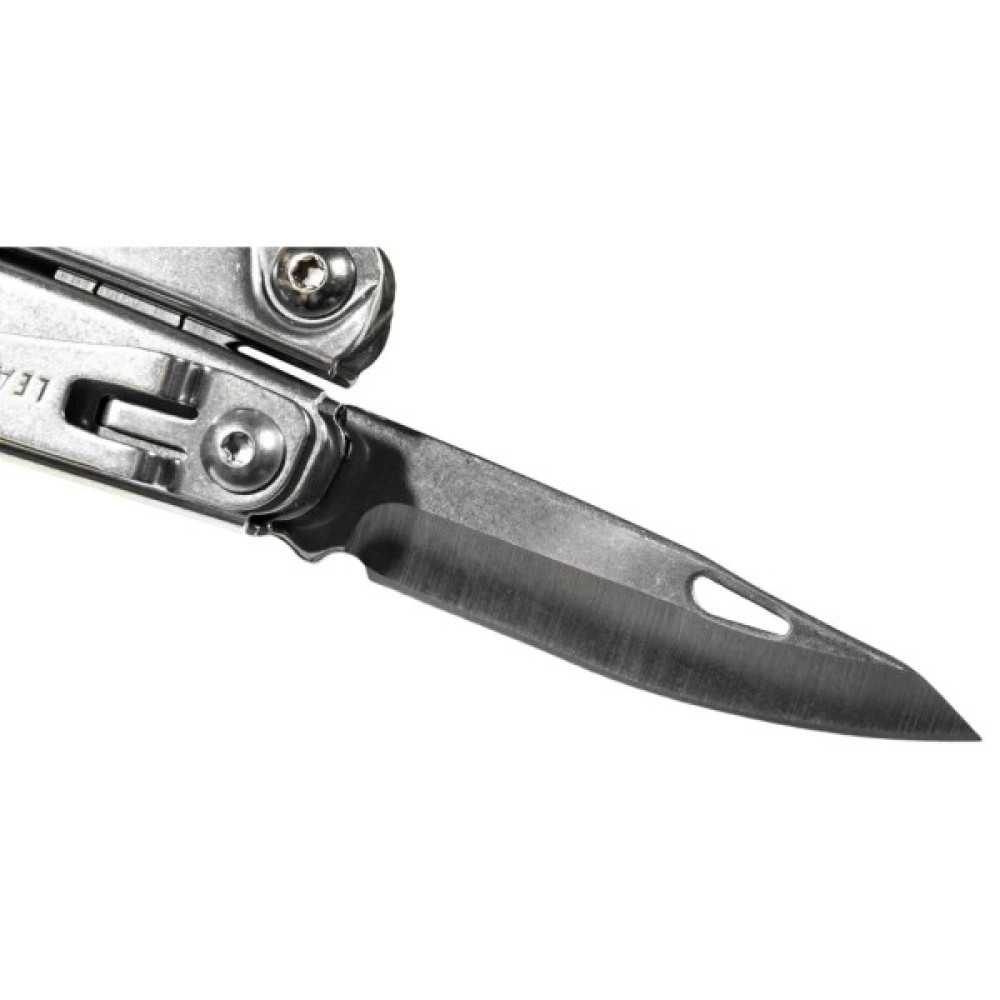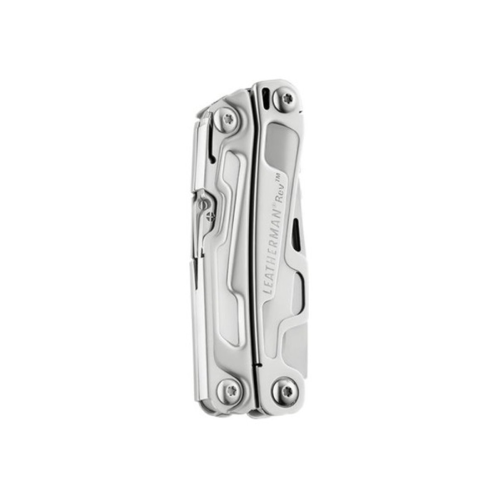 Розглянемо інструменти Leatherman Rev детально. Як і більшість подібних пристроїв, основу цього мультитулу складають зручні складні плоскогубці з кусачками та зубчастим захватом для циліндричних предметів. На додаток до них, є основне лезо ножа, напилок для дерева та металу, інструмент для зачистки проводів, консервний ніж, пляшка, пряма та хрестова викрутки та лінійка. Гостро і жорстке (52 HRC) лезо із заводським заточуванням виготовлене із загартованої нержавіючої сталі 420HC, легованої хромом, марганцем та молібденом. Цей мультиінструмент також включає інструмент для відкриття упаковок, який може бути корисним для робочих різних спеціальностей для відкриття коробок та посилок.