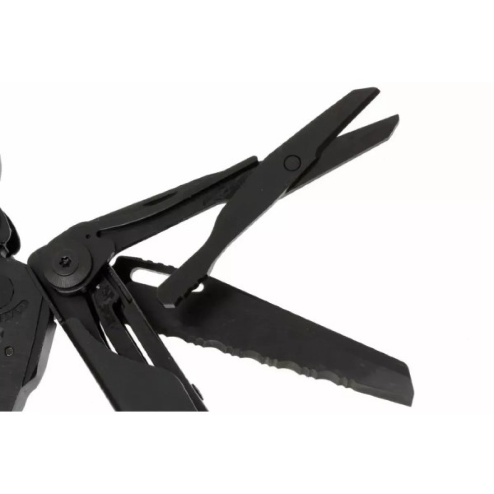 Комплект включає ножі з прямим та серрейторним заточуванням, зроблені з нержавіючої сталі 420HC, стійкі комбіновані плоскогубці, кусачки зі сталі 154CM та інструмент для обрізання дротів. Крім того, в комплекті є пилка, відкривачка, ножиці, напилок, алмазний надфіль, шило, набір різних викруток та лінійка. Особливістю є змінна пилка, яку можна замінити алмазним напилком, що входить до комплекту. У цій моделі також передбачено функцію тримача біт, що дозволяє використовувати прилад з бітами різного дизайну. Додаткова можливість використання внутрішніх ключів - різних шестигранників та "торксів", істотно розширює сферу застосування інструменту.