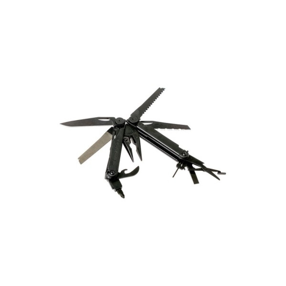 Wave Plus Black від Leatherman пропонує 18 функціональних елементів, які здатні впоратися з широким спектром завдань. До його складу входить звичайний ніж із прямим лезом та серрейтор зі сталі 420HC, призначені для різання твердих матеріалів, включаючи картон, мотузки, канати, пластик, тенти, ремені з нейлону та шкіри тощо. В арсеналі також є плоскогубці, гострогубці, тримачі для великих і малих біт, змінні біти, стандартні знімні кусачки та кусачки для твердого дроту, середня викрутка, ножиці, пилка, напилок для дерева та металу, алмазний надфіль, відкривалки для пляшок лінійка довжиною 19 см та прилад для очищення проводів, про які ми детальніше говорили в нашій статті.