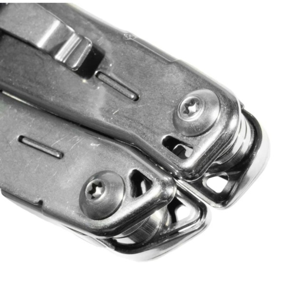 - Знімний кишеньковий затискач. Використовуйте його для кріплення мультитула до кишені чи ременя. За потреби затискач можна зняти.