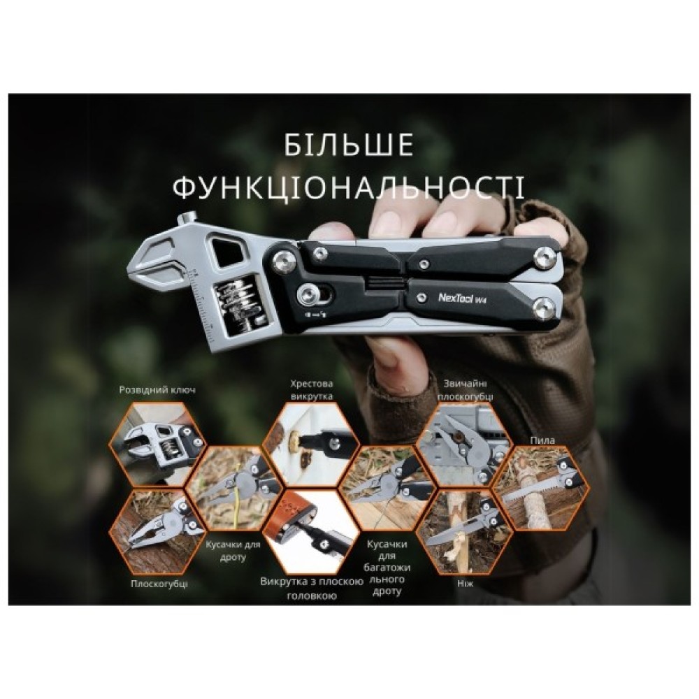 • Мультитул NexTool з 2 повноформатними інструментами (плоскогубці, розвідний ключ)