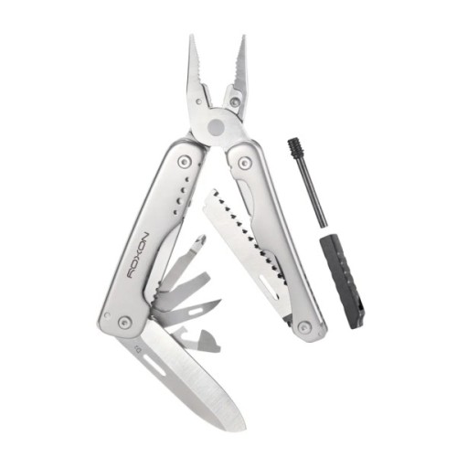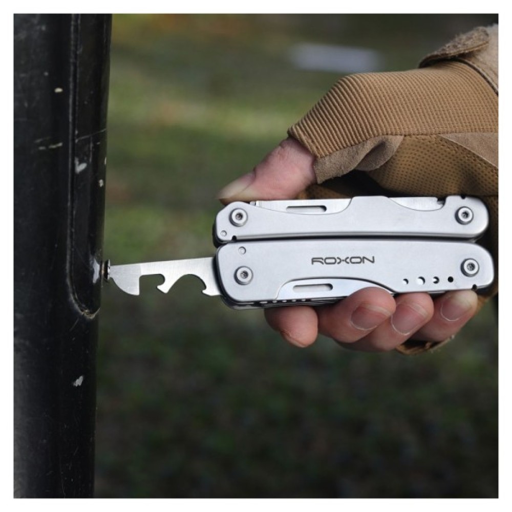 Модель Roxon S803E — це другий повноформатний мультитул в асортименті компанії (після Roxon Spark CM1349), в конструкції якого є кресало та свисток. Інструмент підходить для повсякденного носіння та експлуатації, оскільки в ньому витримано баланс між функціональністю та компактними розмірами у складеному положенні, які становлять лише 10.2 х 3.9 х 2.2 см.