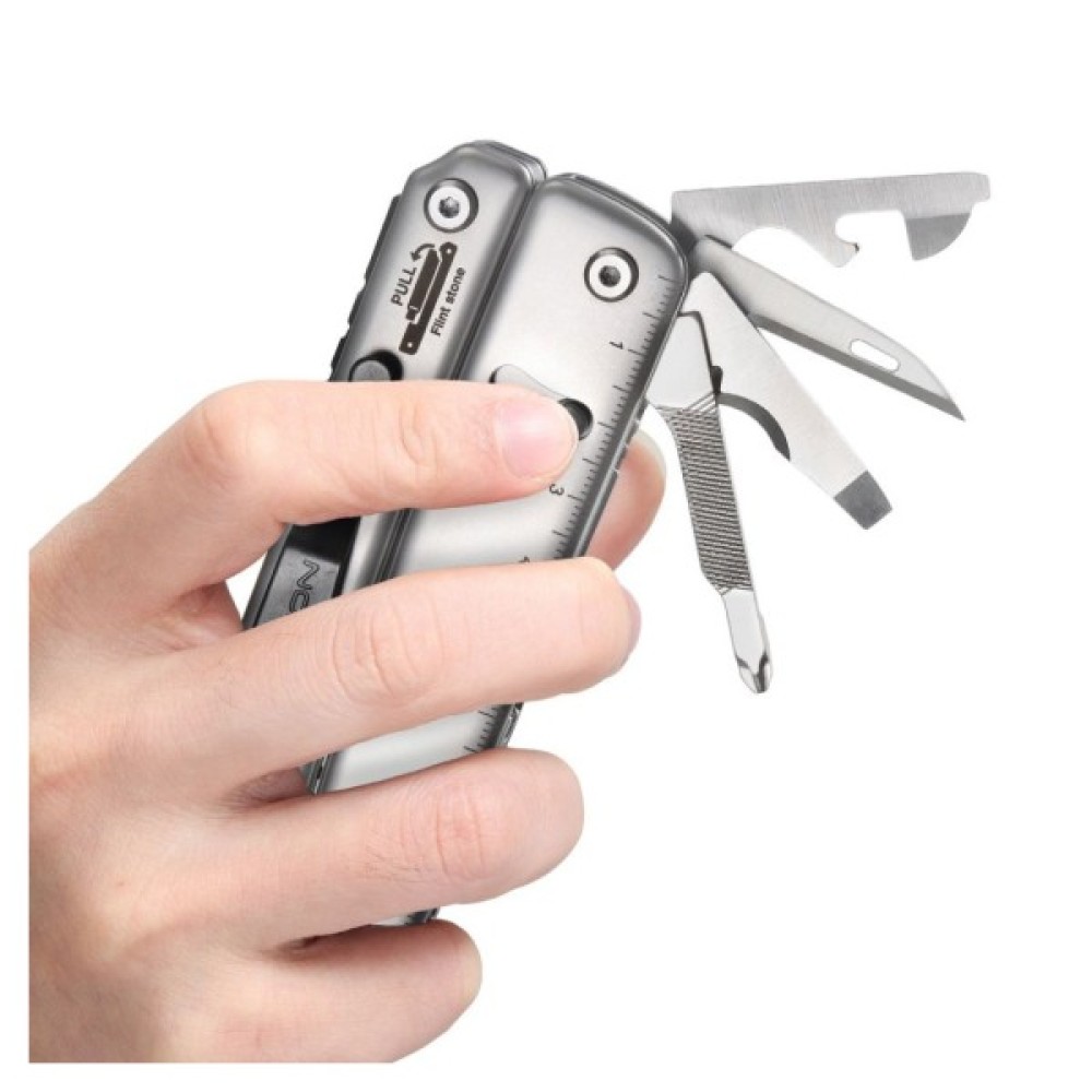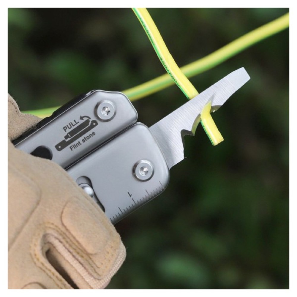 Конструкція складається з 20 інструментів. Крім кресала та свистка тут є:- плоскогубці зі звуженими губками;