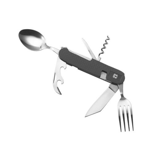 Завдяки ергономічній анодованій алюмінієвій рукоятці, мультитул не тільки зручно лежить в руці, але й витримує суворі умови використання. В комплекті ви знайдете вісьм вкрай корисних інструментів: консервний ніж, ложку, виделку, штопор, льодокол, відкривач для пляшок, крюк для підвішування та ніж. Легка вага та компактні розміри (довжина всього 10.5 см) роблять цей мультитул ідеальним для перенесення.