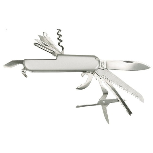Пила; Ніж; Ножиці; Штопор; Консервний ніж; Відкривачка для пляшок; Викрутка плоска; Викрутка хрестова
