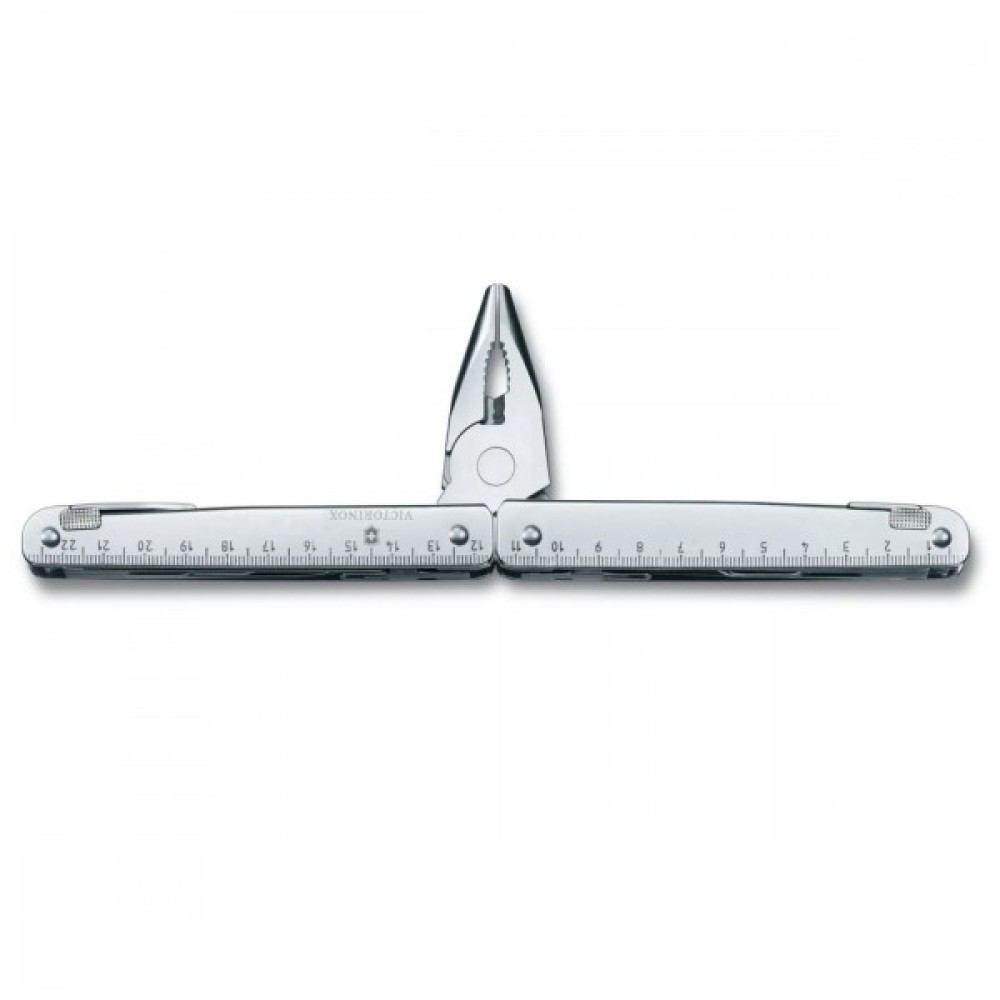 Лезо, велике / Розвертка, пробійник / Ножиці / Пилка по дереву / Хрестова викрутка 1/2 / Лінійка (см) / Лінійка (дюйм) / Отвір для темляка / Муфта для штопора та кліпси для перенесення / Плоскогубці / Відкривачка для консервних банок / Відкривачка для пляшок / Зубило 7 мм та скребок / Викрутка 3 мм / Кусачки для тонкого та м'якого дроту до 40 HRc / Кусачки для твердого дроту / Обтискувач дроту / Згинач дроту / Викрутка 5 мм / Викрутка 7,5 мм / Викрутка 2 мм / Пилка по металу / Напилок по металу / Міцний відкривач ящиків / Скребок для дроту / Інструмент для зачистки дроту